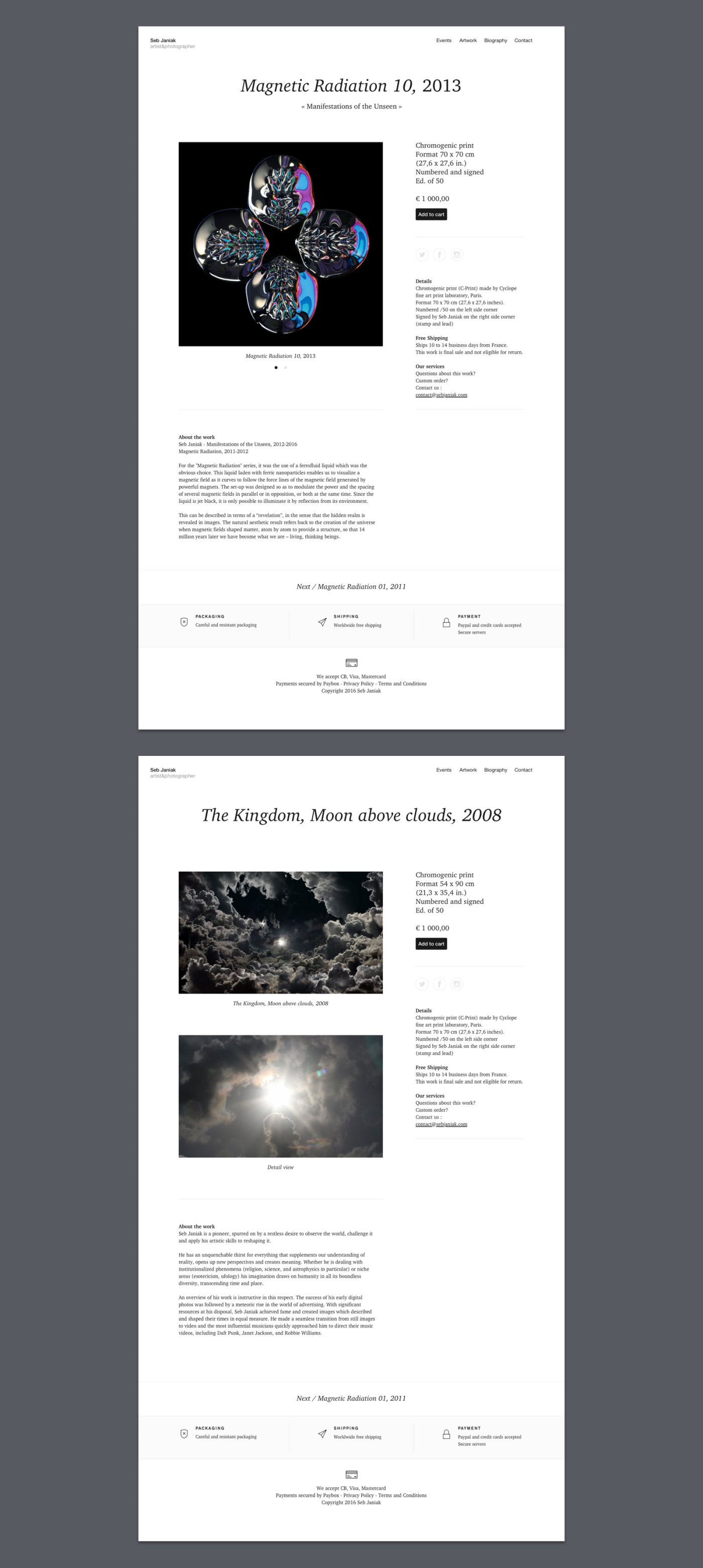 Direction artistique, UI+UX, conception et réalisation du site sebjaniak.com. Intégration et développement full stack. Gestion de projet.
