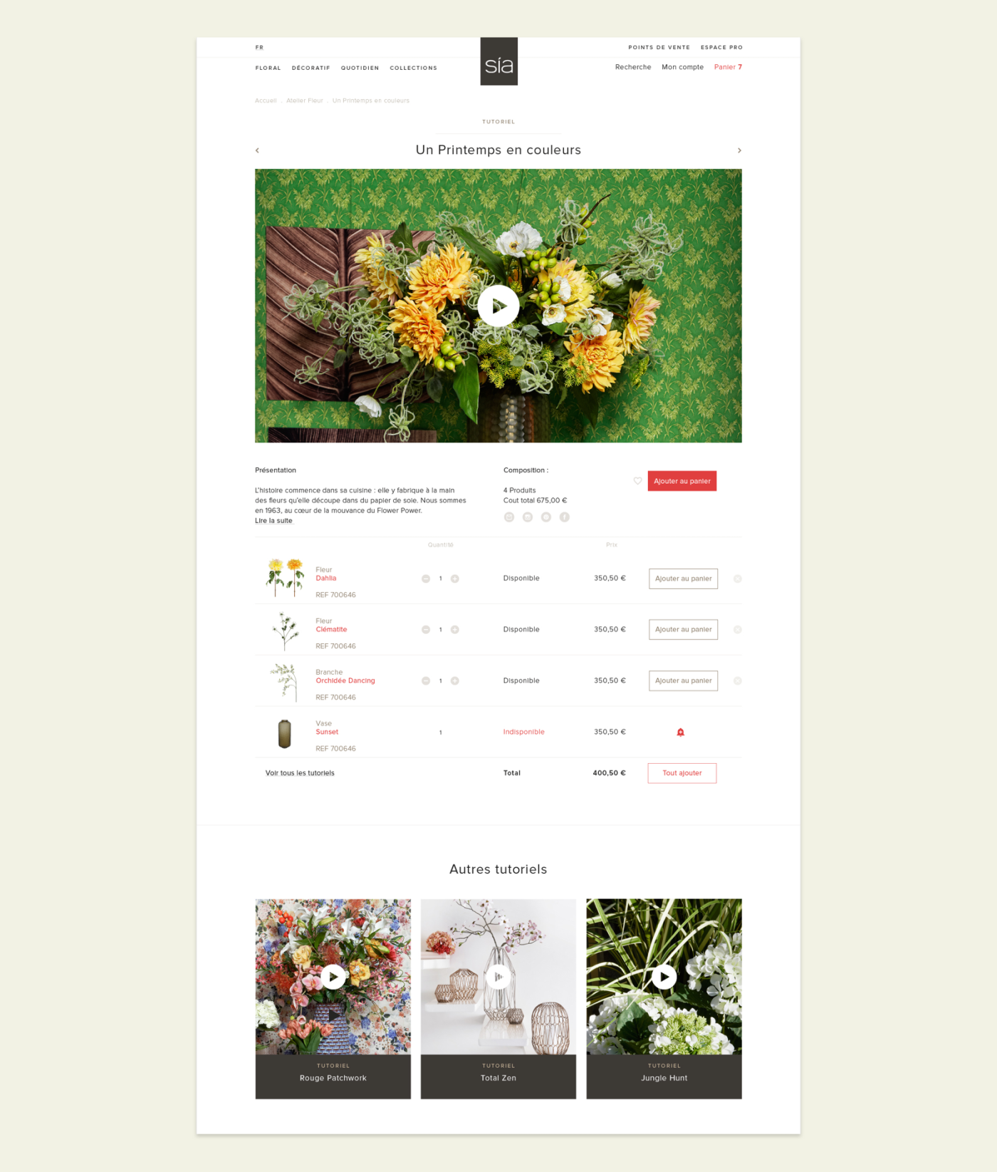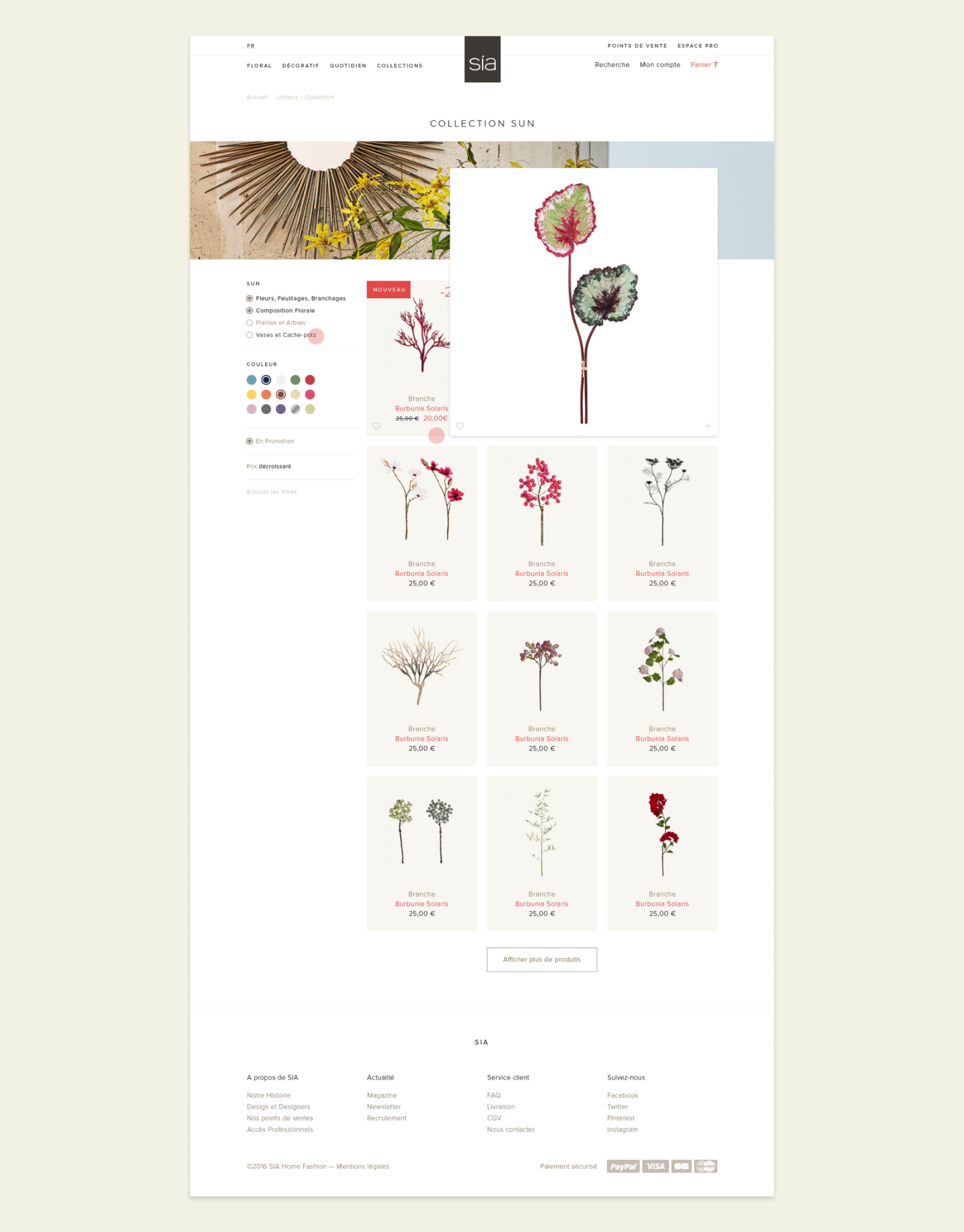 Direction artistique, UI+UX, du site www.sia-deco.fr