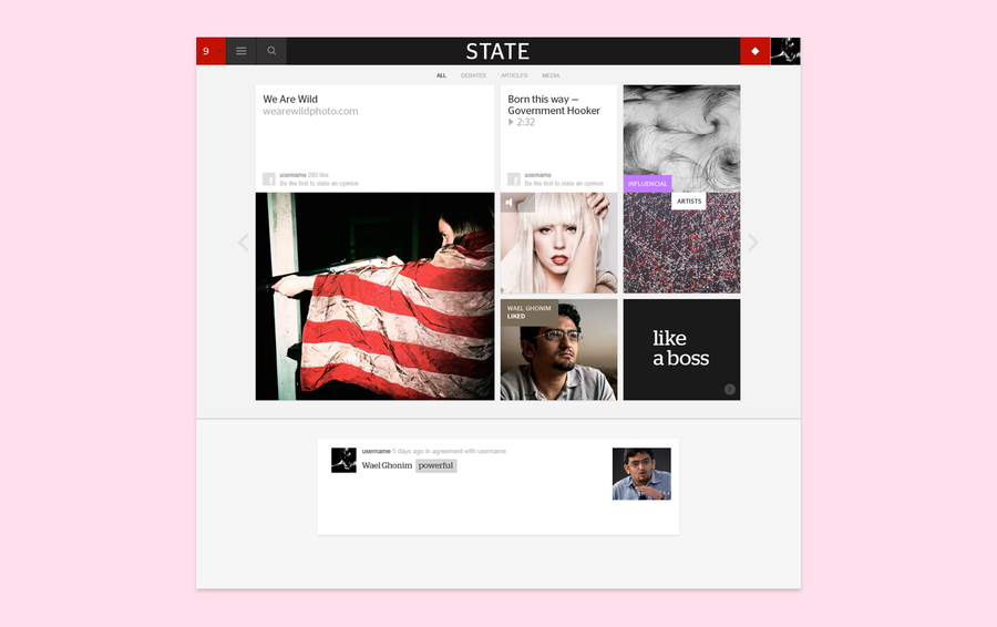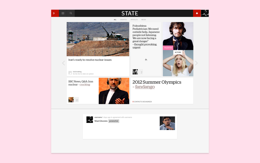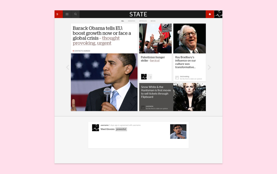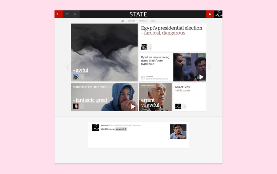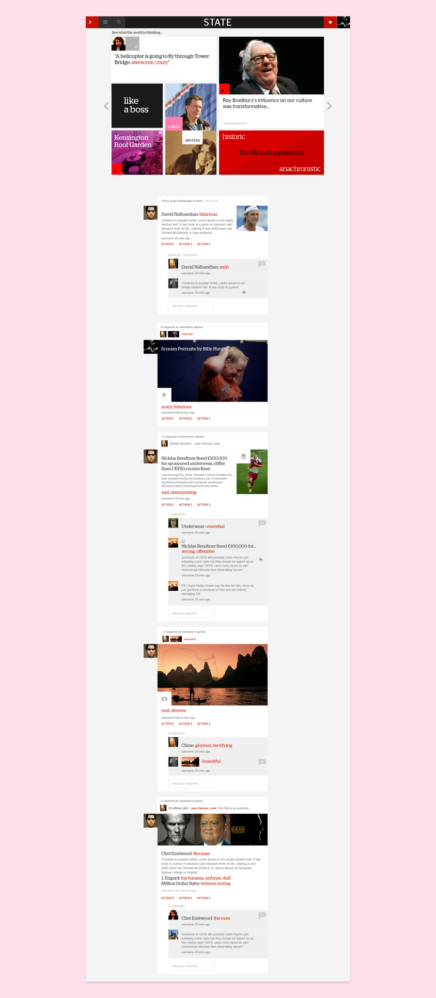 Direction artistique et recherches graphiques pour le réseaux d'opinions State.com.