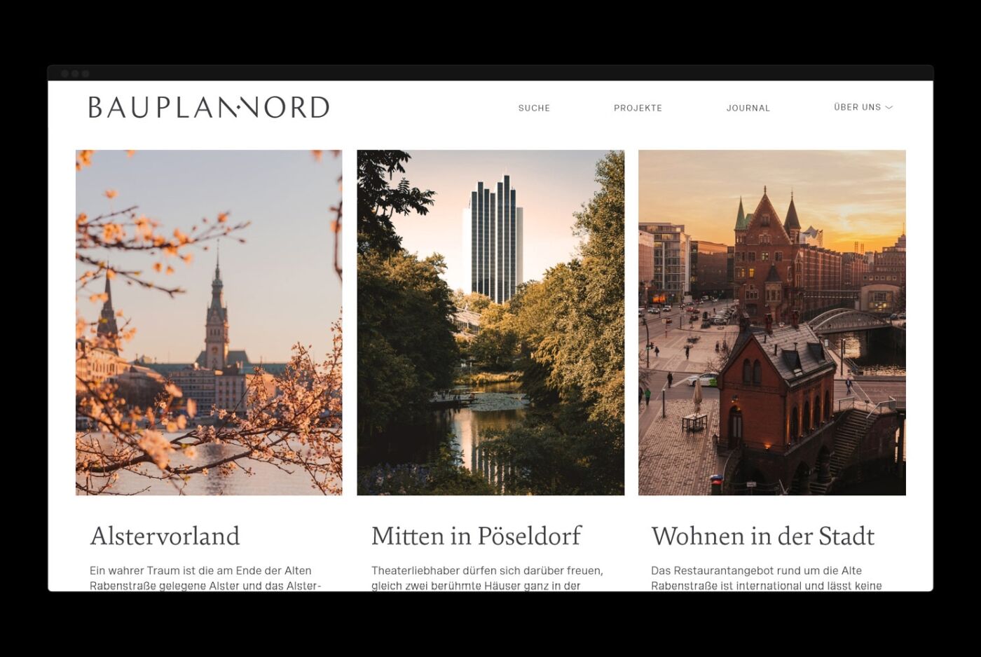Webdesign pour la société de développement immobilier Bauplan Nord. Fondée en 1994, Bauplan Nord est devenue une société à large échelle qui non seulement planifie et réalise des projets dans le nord de l'Allemagne, mais possède également une expérience internationale.