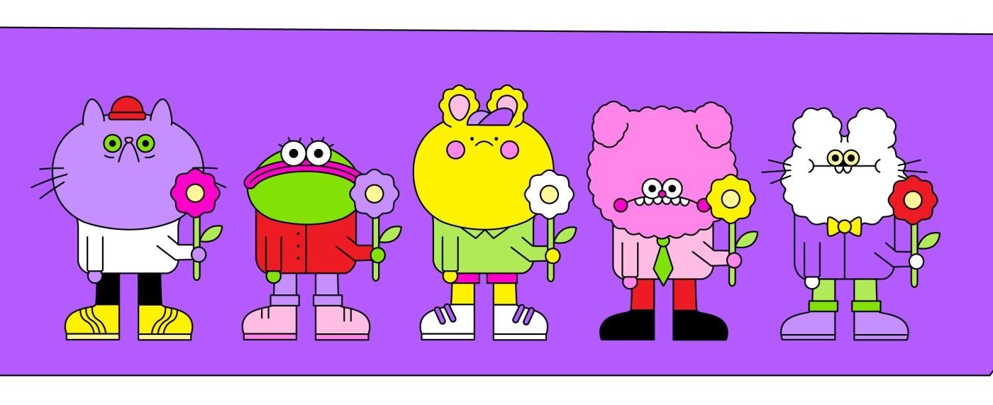 Alice Monvaillier's ultra-colorful pop style plays with the absurd. The world she creates is sweet and subversive at the same time, playing on the contrast between the apparent sweetness of the characters and their quirky, mischievous attitude, with their round eyes as if caught in the act of indulgence. But we can’t talk about Alice's style, abundant, unique, and humorous, without mentioning her passion, the risography. With a textured effect and a limited yet striking palette, risographs strengthen the distinctive and playful identity of her work.