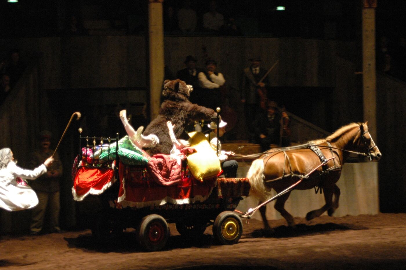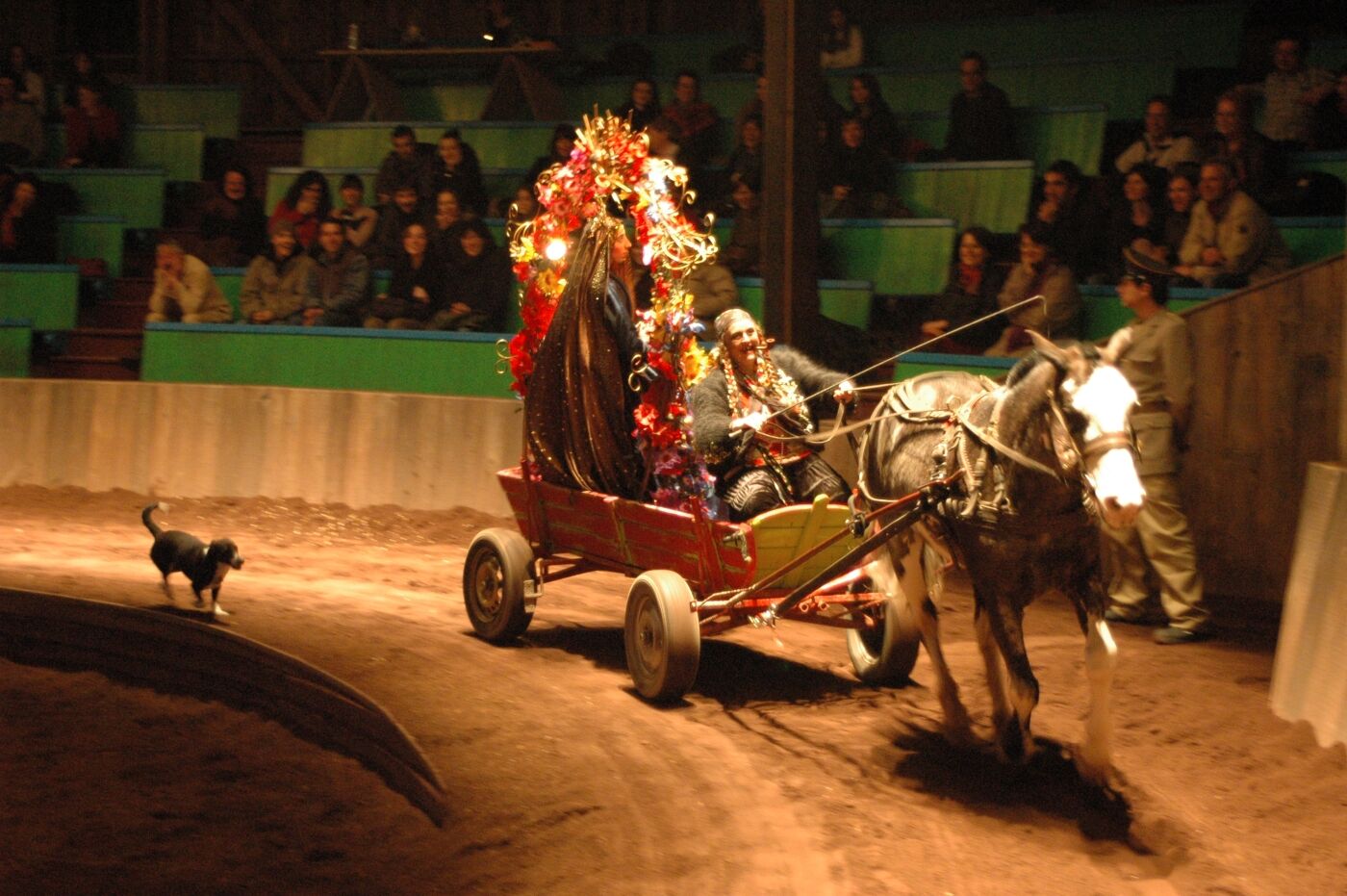 Conception et réalisation de 10 décors pour 5 attelages, pour le spectacle « Battuta » du théâtre équestre