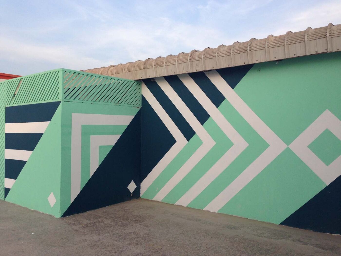 Peinture murale dans la galerie Art Hub d’Abou Dhabi. Le design est inspiré des formes géométriques de la calligraphie arabe Kufic.