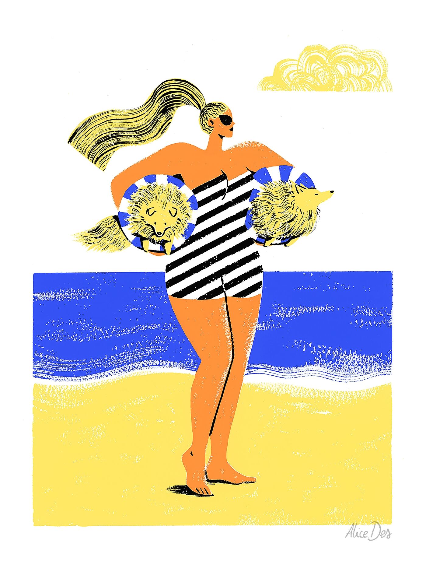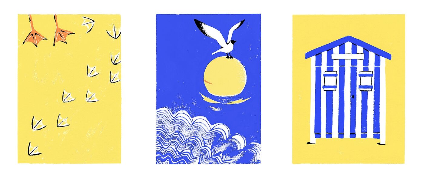 " L’été, sur la Côte d’Opale, on vit au rythme des marées. Le petit carnet des horaires est à portée de main sur l’étagère de la cuisine pour planifier la journée. À marée haute, on va chercher une sole ou un tourteau sur le port de Boulogne-sur-Mer, on fait une digue à Wimereux, on profite d’un apéro cabine entre amis ou d’une moules-frites lors de la traditionnelle Fête de la Moule - si possible en terrasse, et surtout vue mer. À marée basse, on installe soigneusement sa serviette - pas trop loin de l’eau, mais à distance de la vague taquine, on part se baigner ou naviguer, on pêche la crevette, on pique-nique malgré le sable qui s’invite dans le paquet de chips. Certains étés, le soleil se cache et se fait désirer. Parfois même la tempête s’annonce, une rafale de vent fait s’envoler les cabines, les vagues éclatent sur les brise-lames. Après tout, c’est le Nord. Est-ce que ça n’en rend pas les souvenirs des beaux jours encore plus savoureux? " Alice Des.
