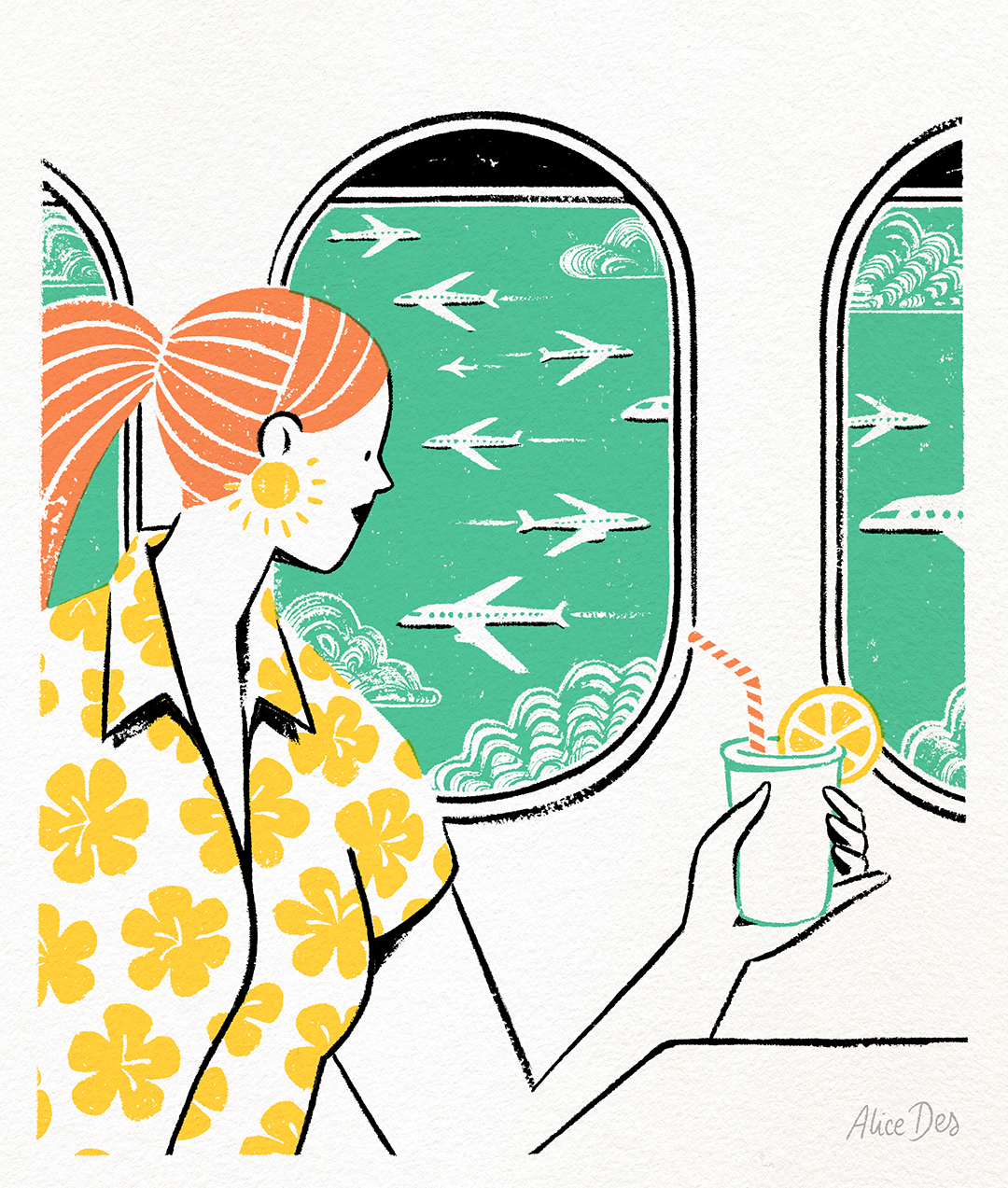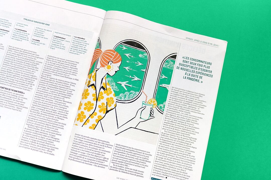 Illustrations pour Les Échos Week-End du 02 juillet sur le "Revenge Travel", ou la frénésie de voyages post-Covid.
