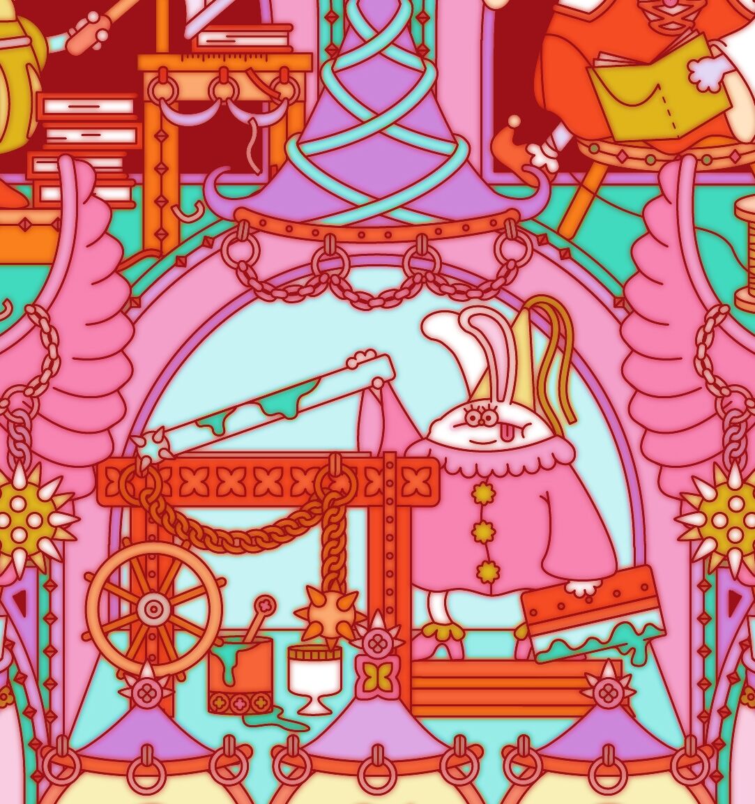 Le style pop ultra-coloré d'Alice Monvaillier flirte avec l’absurde. L'univers ainsi créé est à la fois mignon et un peu irrévérencieux, jouant sur le contraste entre la douceur apparente des personnages et leur attitude givrée, malicieuse, avec leurs yeux tous ronds comme s’ils étaient pris en flagrant délit de gourmandise. Mais on ne peut parler du style d'Alice, si foisonnant, singulier et drôle, sans évoquer la risographie qui est une passion pour elle. Avec un effet de texture et une palette restreinte mais percutante, l'impression riso renforce l'identité marquée et ludique de son œuvre.