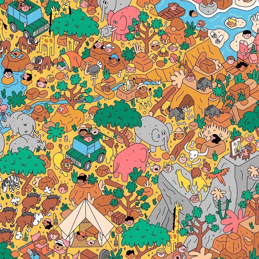 Ne cherchez plus Dan Woodger, nous l'avons trouvé ! Et ça n'a pas été simple de le repérer au milieu de cette foule incroyablement dense. L'art de Dan est d'emboîter ensemble différentes scènes de vie pour ne former qu'un tout. Comme s'il souhaitait nous raconter le monde entier en une seule image. Très inspirée de l'univers graphique des Simpson, colorée comme le sont les Dragibus®, l'illustration de Dan nous offre l'occasion de ne jamais grandir et de continuer à s'émerveiller de tout.