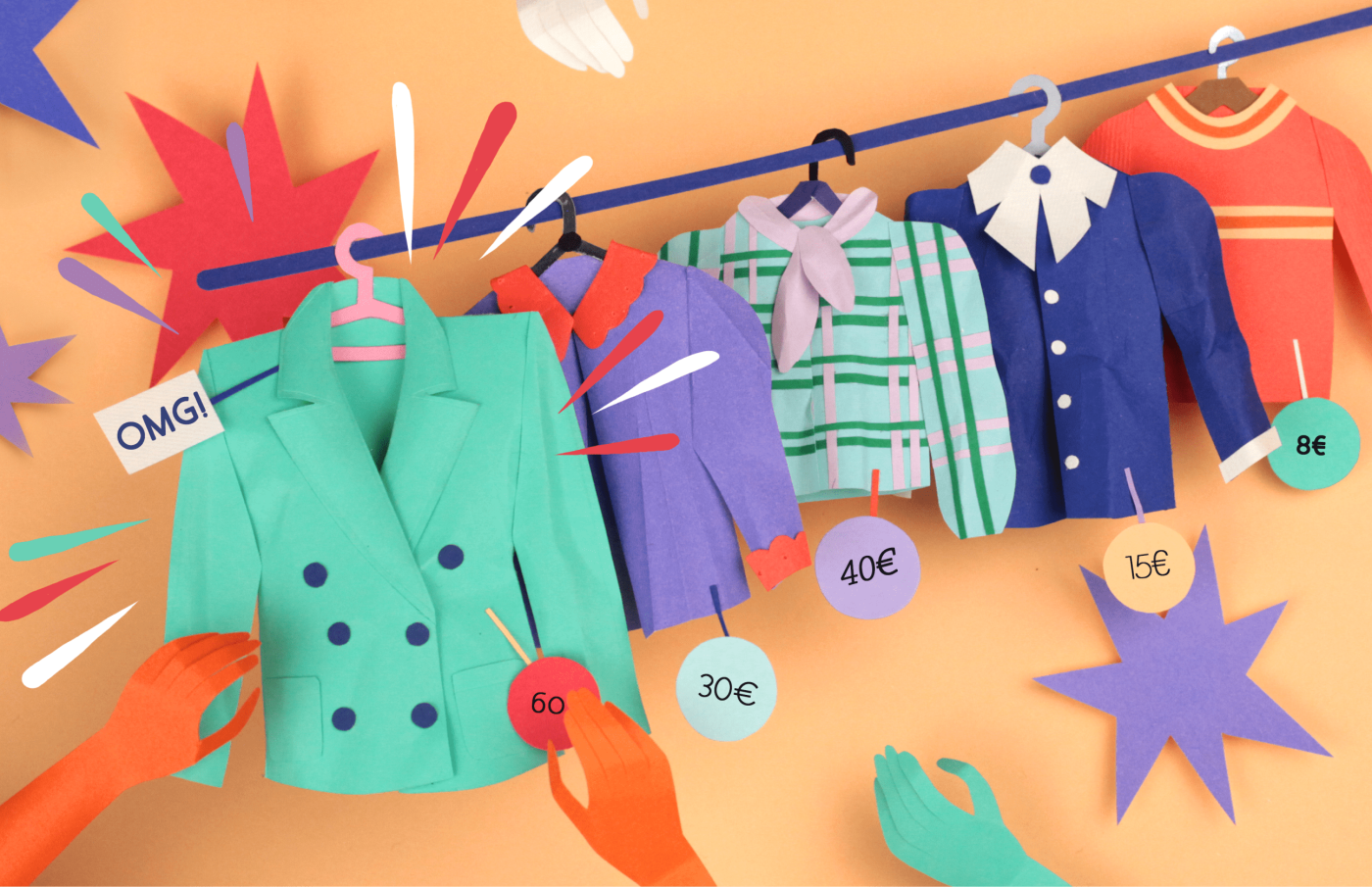 Le magazine m'a commandé deux illustrations en papier sur le thème de la friperie, des trouvailles vintages que l'on peut faire et des pépites vestimentaires que ces magasins renferment ! Un bonheur de découpé et créer tous ces petits vêtements !