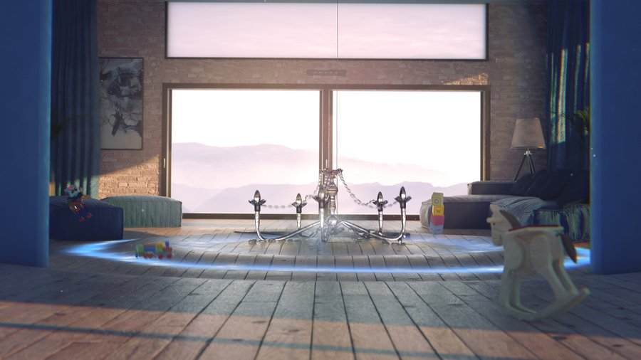 A mask floats in the air and when in contact with different objects, it generates a shock wave that modifies the laws of gravity, transforming our perception of things, breaking its peaceful and calm atmosphere. The home is no longer prone to the usual routine.