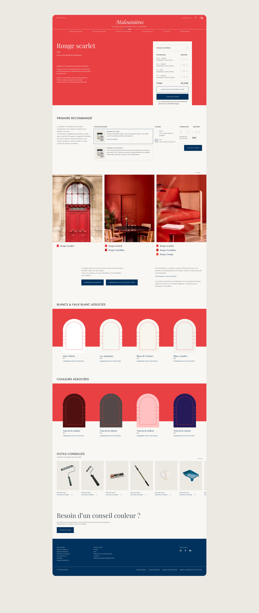 Cécile Mugler. Depuis dix ans, la malouine collabore avec les architectes en chef des monuments historiques et nationaux recherchant à restituer une couleur et une nuance précise sur site. De ce travail de recherche de couleurs pour portes, fenêtres et boiseries d'architectures remarquables, est né un nuancier d'excellence. Alimenté au fil des collaborations, ce sont plus de 72 couleurs qui aujourd'hui se déclinent en plusieurs finitions intérieures et extérieures.