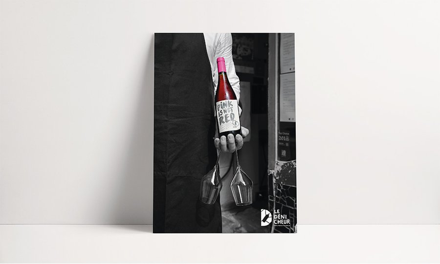 Création d'une identité visuelle pour Le Dénicheur, un bar à vin nature qui est à Paris.