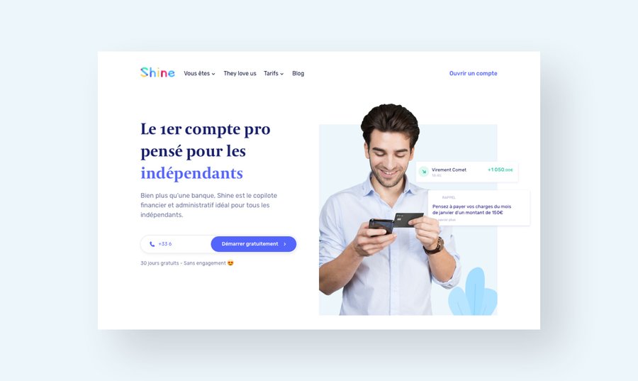 Shine représente une alternative aux comptes bancaire traditionnel pour les freelance qui travaille en France. Il est possible d'envoyer et de recevoir de l'argent depuis votre compte Shine comme avec n'importe quelle autre application bancaire.