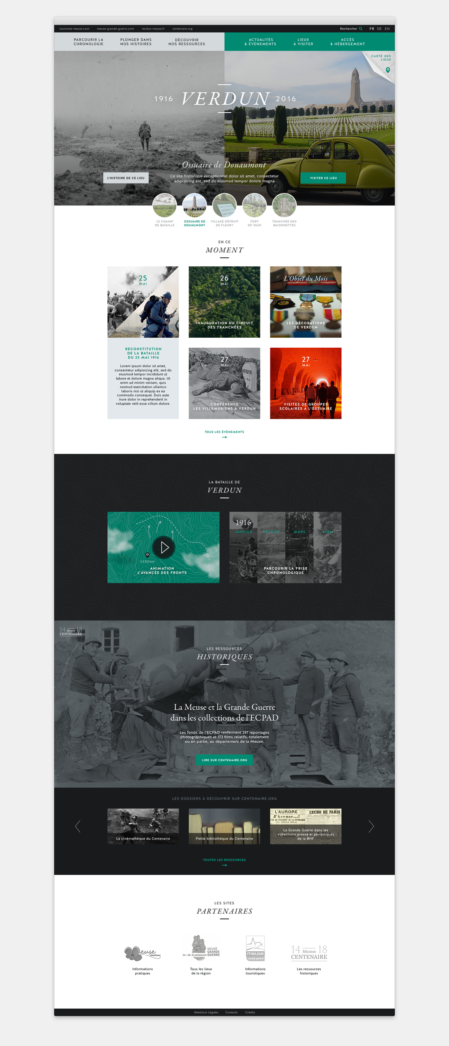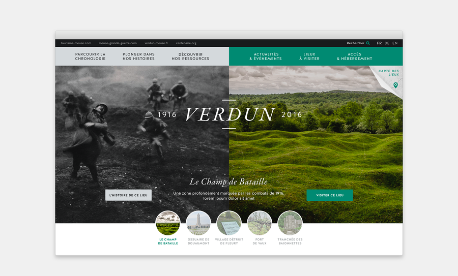 Proposition DA + UX pour le site web consacré au centenaire de la bataille de Verdun. Collaboration avec l'agence is&a bloom.