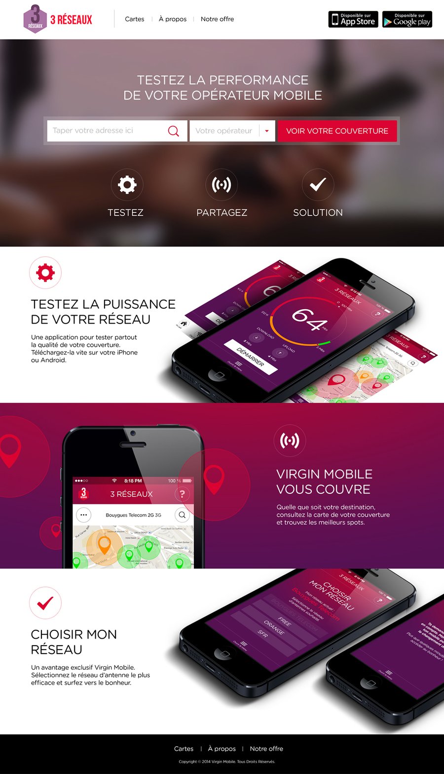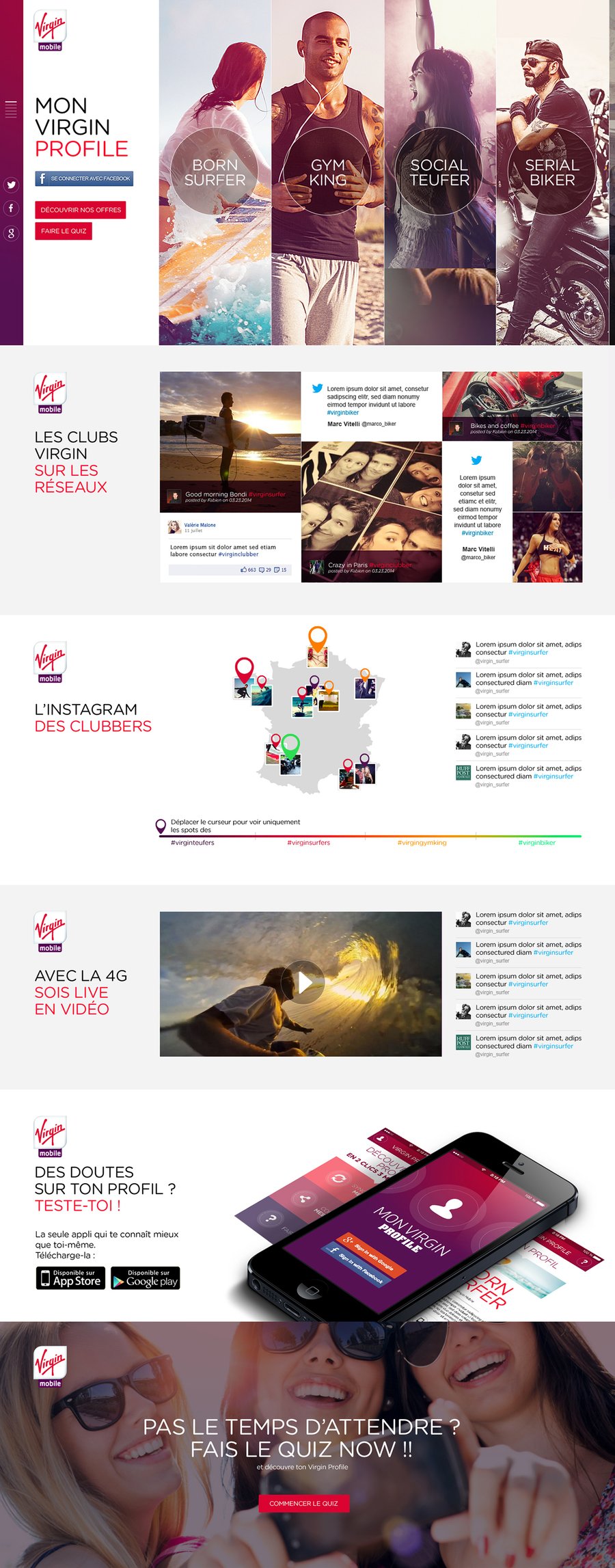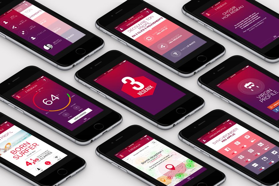 Direction artistique d'une application mobile et du site associé pour Virgin Mobile. Une collaboration avec Spikly.