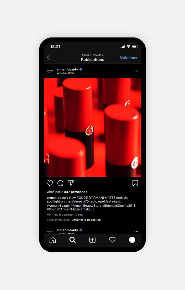 In 2018, I took the creative lead on Armani Beauty’s Instagram account inside Publicis Luxe’s dedicated team. This assignment required providing daily updates for the brand’s page, sketching and producing images, either outsourcing the photography or shooting in-house.