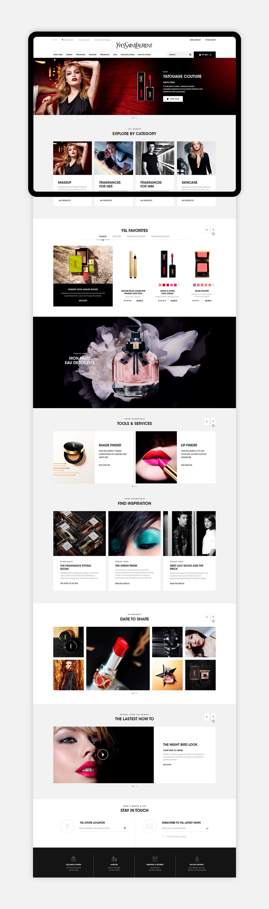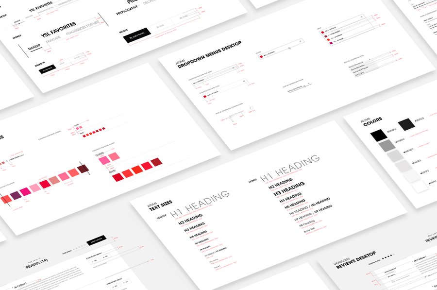 For over a year and a half I was in charge of UI design in the YSL Beauty team at Publicis Luxe. One of our main mission was the complete redesign of the yslbeauty.com website, including the conception of a design system to maintain consistency throughout the wide array of pages created.