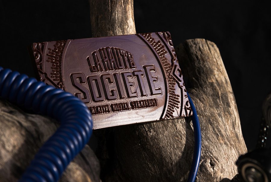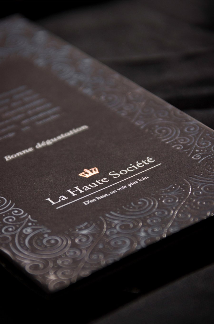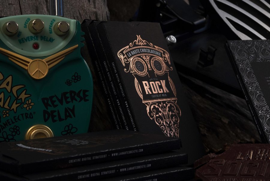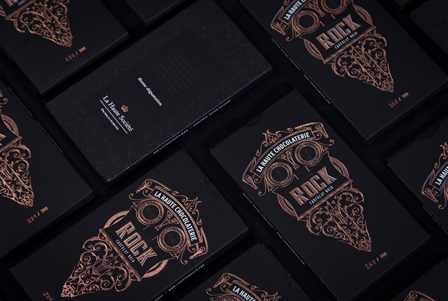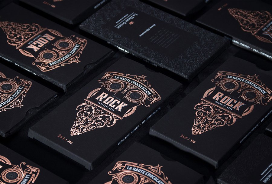 Chocolate bar packaging printed on Fedrigoni Sirio Ultra Black 280 gr/m2.