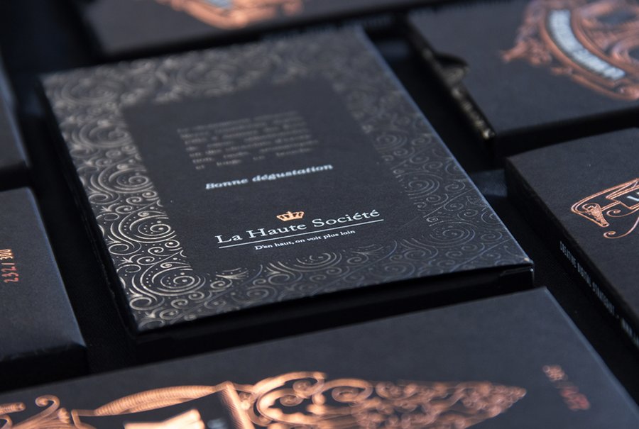 Hot stamping: Copper (Luxor 355), white and shiny black.