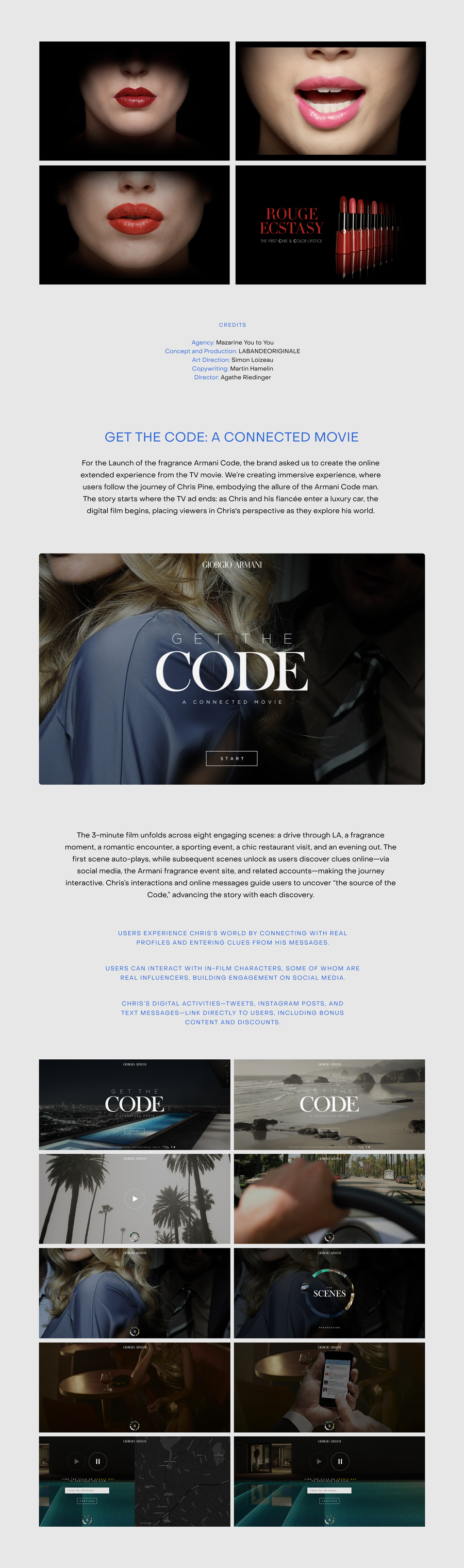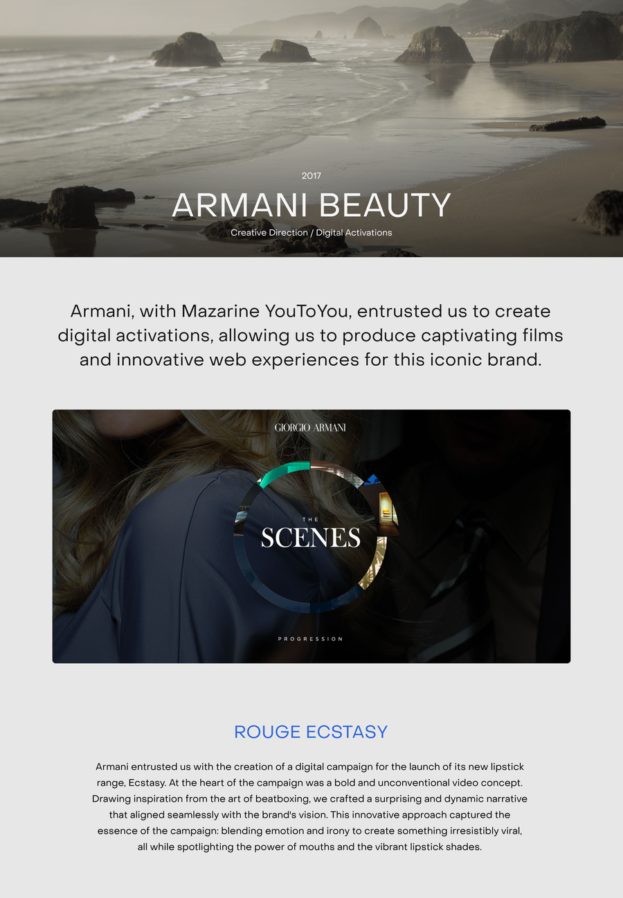 L’Oréal Paris, FIA-WEC, Glenfiddich, Moncler, Garnier, 24h LeMans, Sisley, Kenzo, Longchamp, Sensee, Garnier, LISAA, Makeup For Ever, Zeit, Poilane, Comédie Française, Lancôme, Vilebrequin, Armani Beauty, Théâtre du Châtelet, RNM Grand Palais, Ruinard, Pulco (Suntory), Peugeot, Samsung, SciencesPo, Mumm