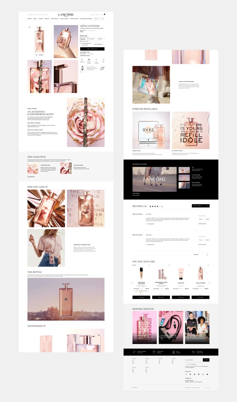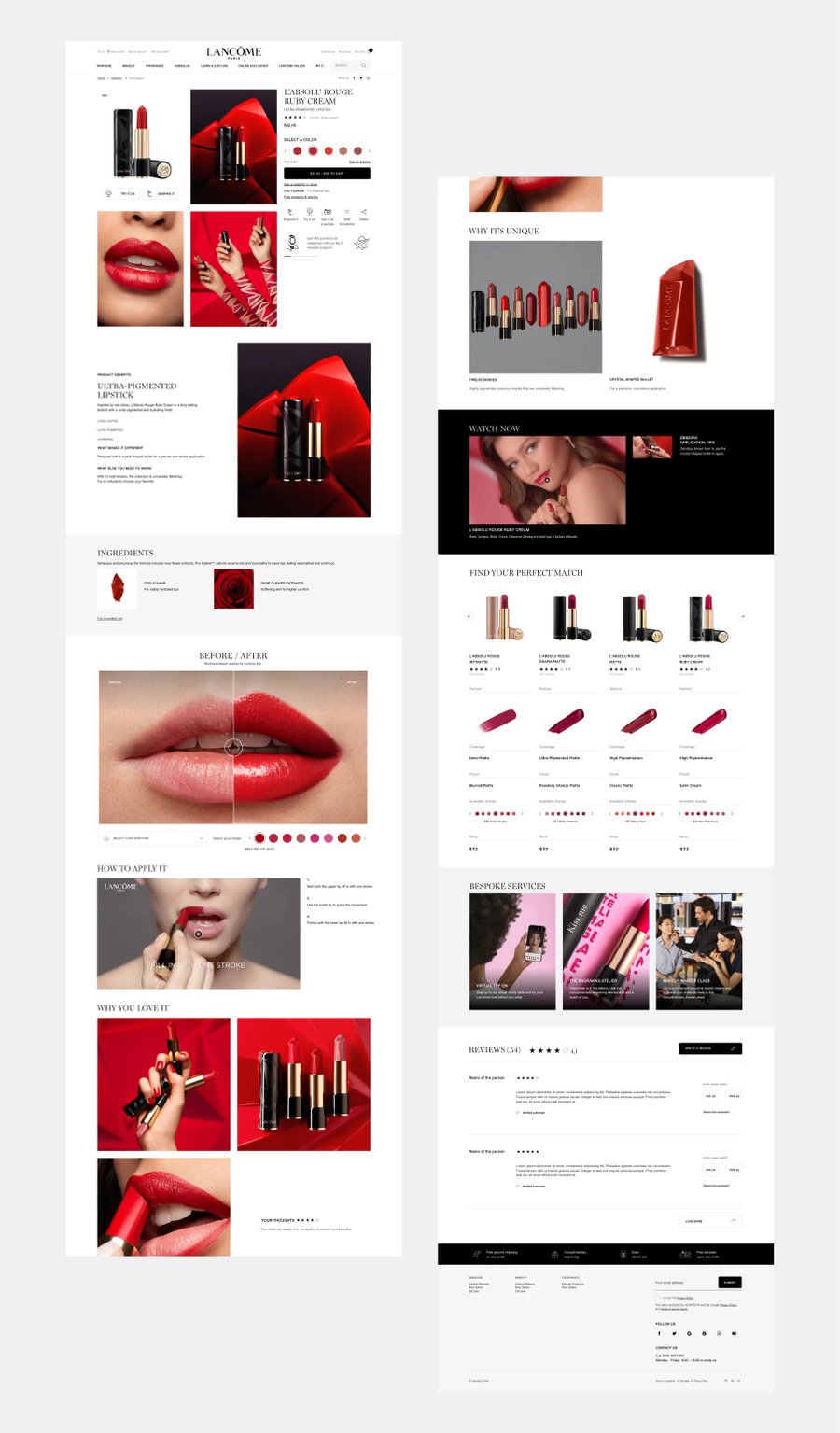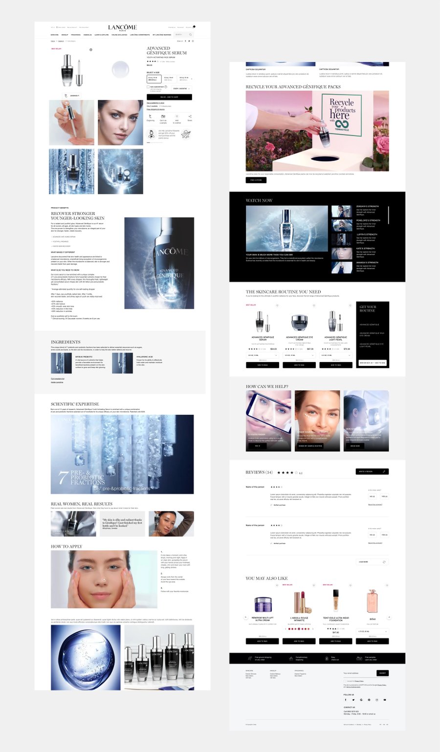 Création de pages produits détaillées modulaires du nouveau site Lancôme. Template applicable sur le skincare, makeup et fragrance.
