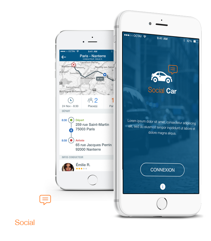 Voici un concept d'application sur la base de covoiturage, du transport, taxi et social.
