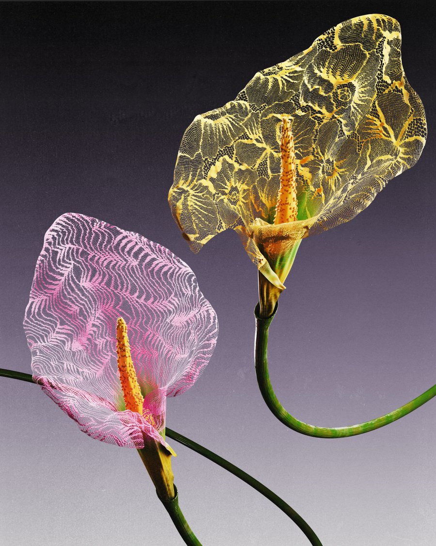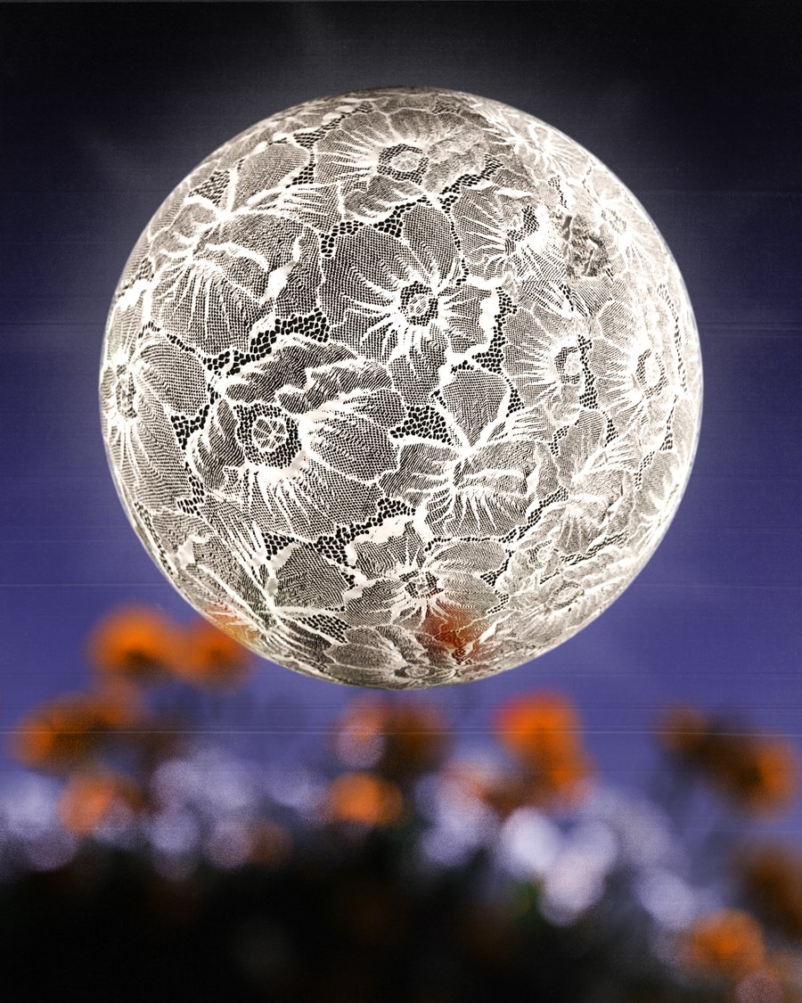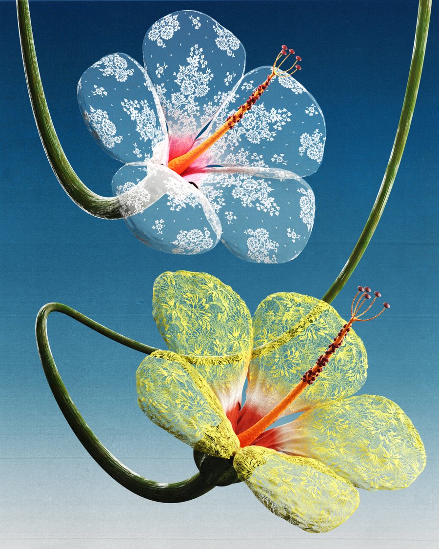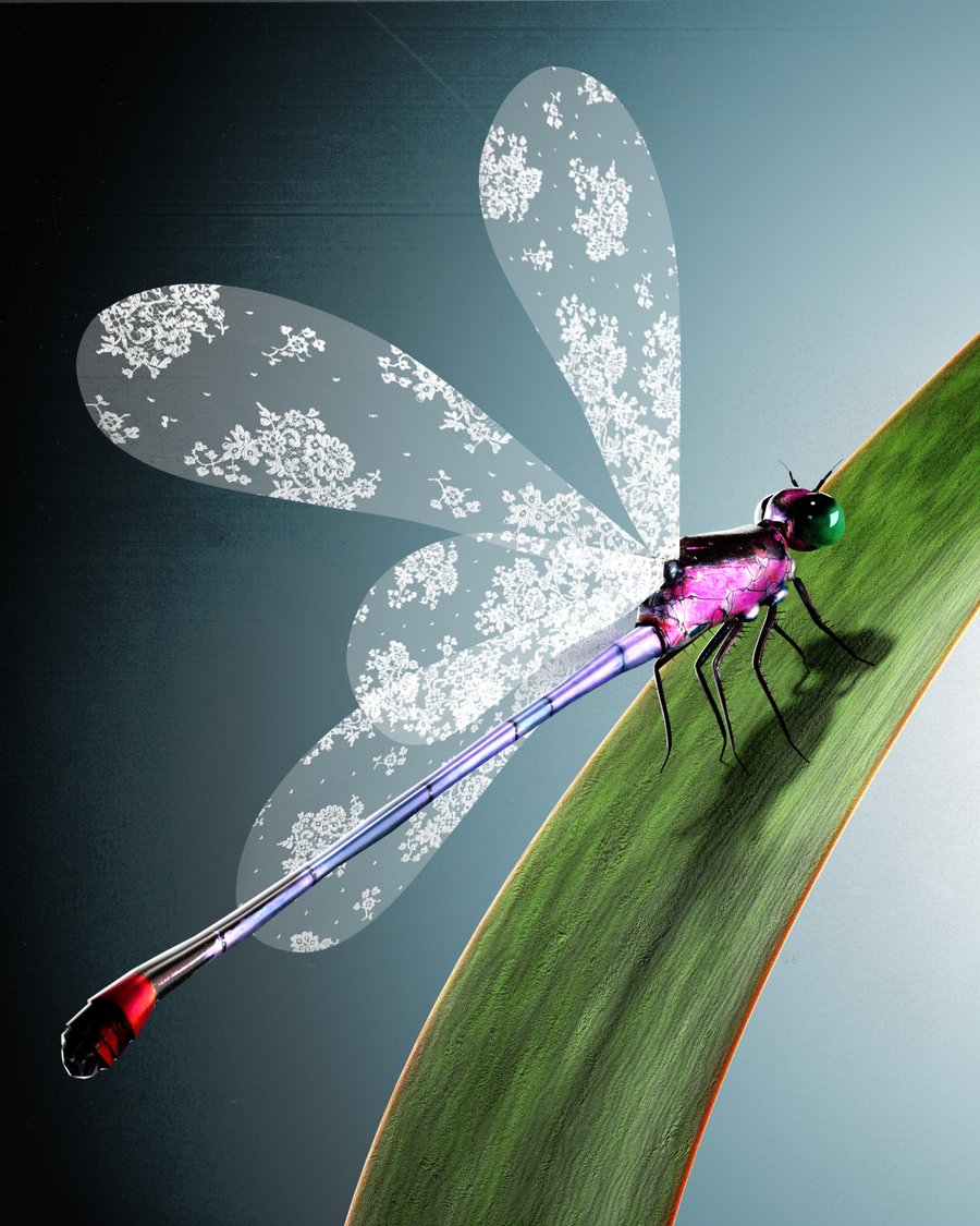 Drawing inspiration from nature, the project blends flowers, insects, and delicate lace structures into dreamlike compositions.