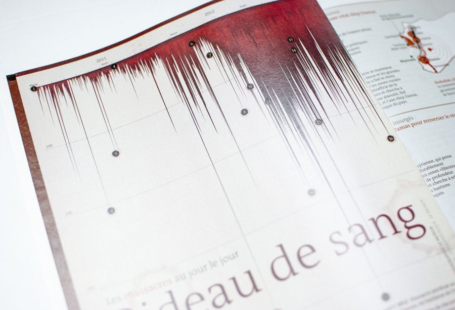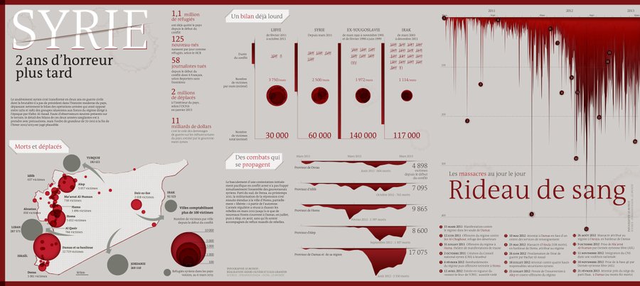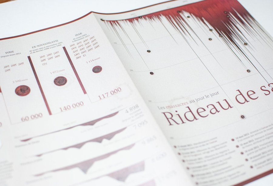 Direction artistique et réalisation des visuels du spécial les 2 ans de guerre en Syrie pour le HS Guerre du journal Le Monde.