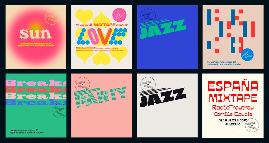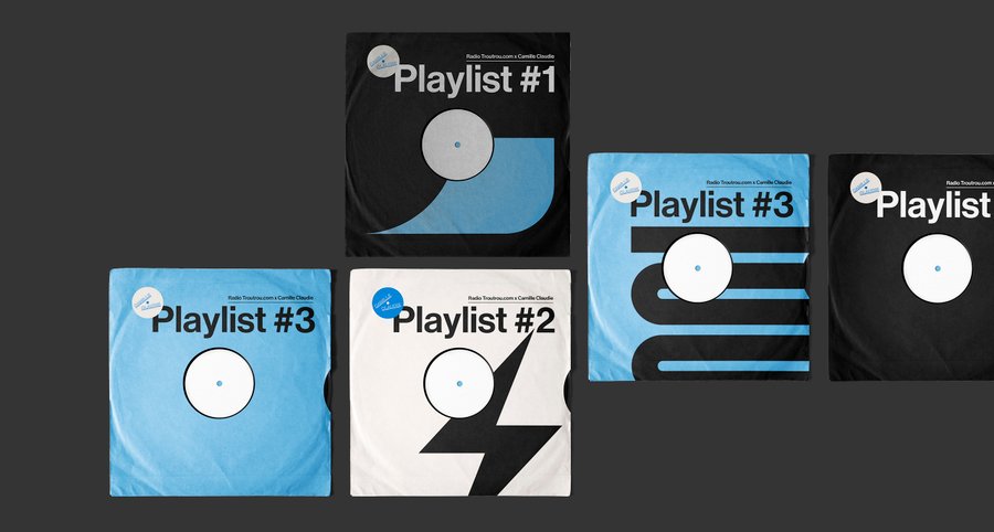 Conception et réalisation de l’identité visuelle de Camille Claudie, programmatrice musicale. Réalisation de cover d’albums de playlist en sélection pour l’incroyable Radio Troutrou.com.