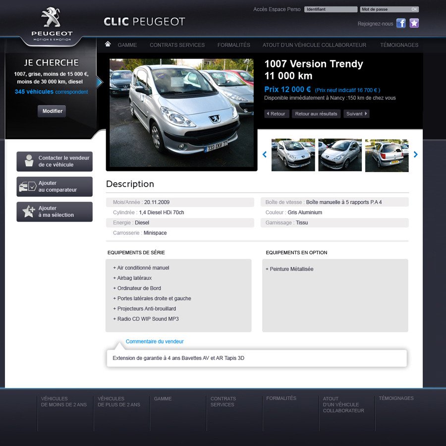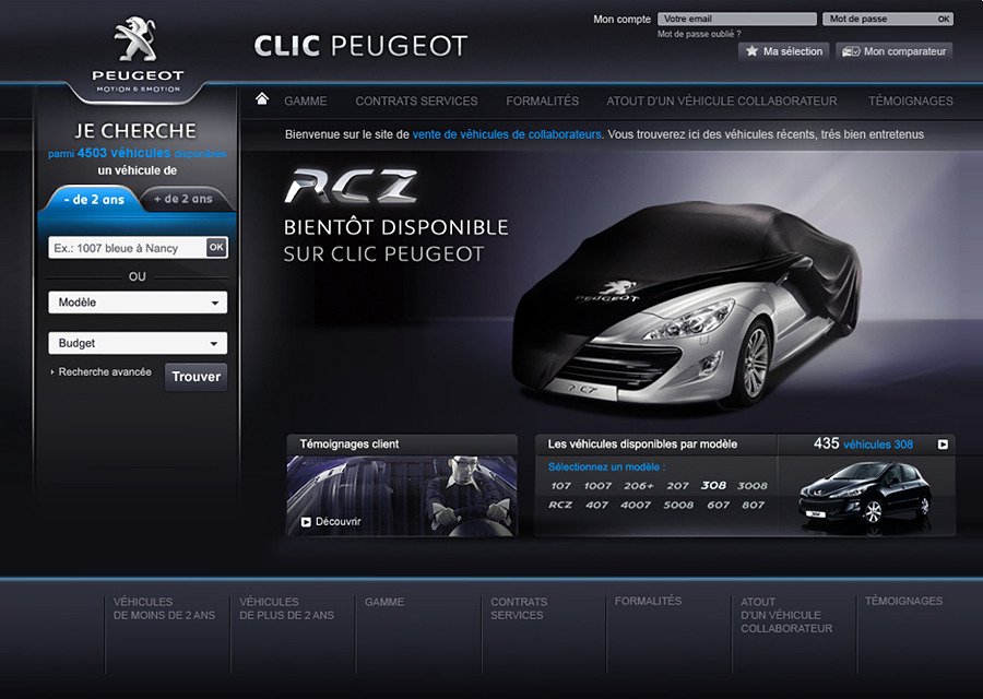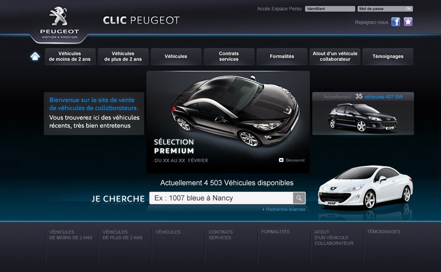 Refonte site clic peugeot : Vente de véhicules collaborateurs+ Conception et création graphique