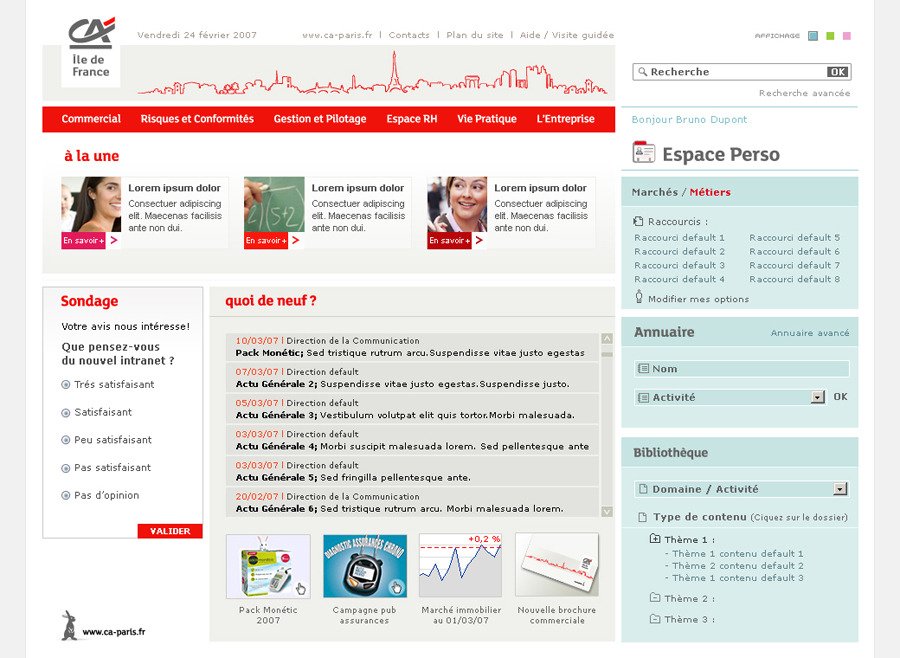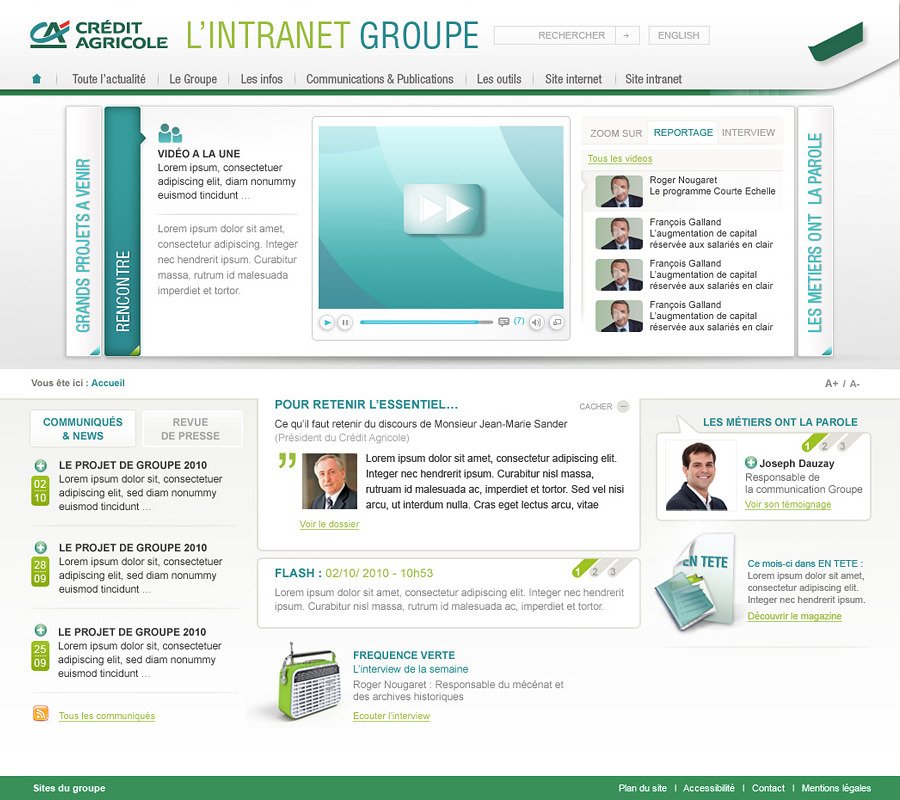 Dragon Rouge : Refonte site et intranet Cadif :+ Conception et création du site client + Conception ergonomique et création style web intranetMédiagong : Refonte intranet Groupe / Cercle Top Management / Projet 2014+ Conception et création graphique