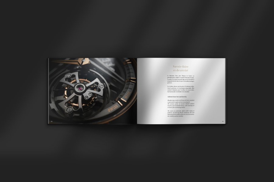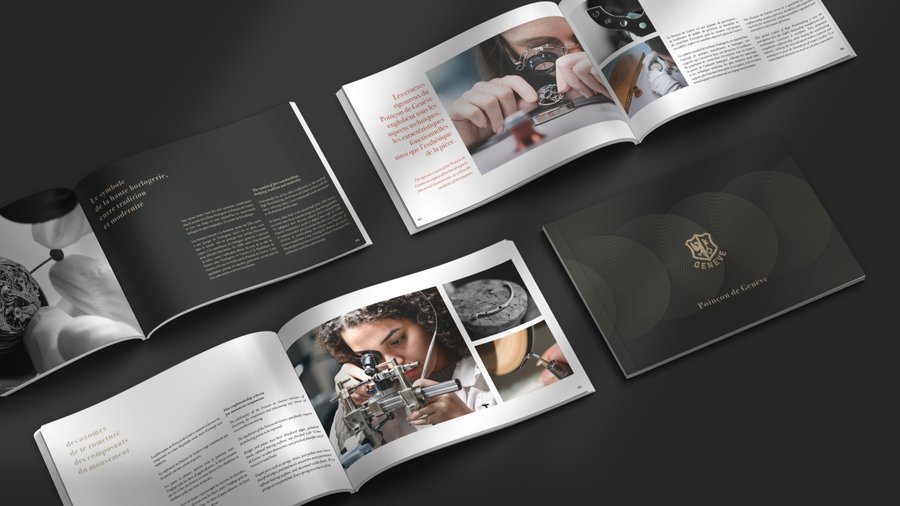 Creation of a presentation leaflet for the Poinçon de Genève, the standard of excellence and emblem of Geneva's haute horlogerie.