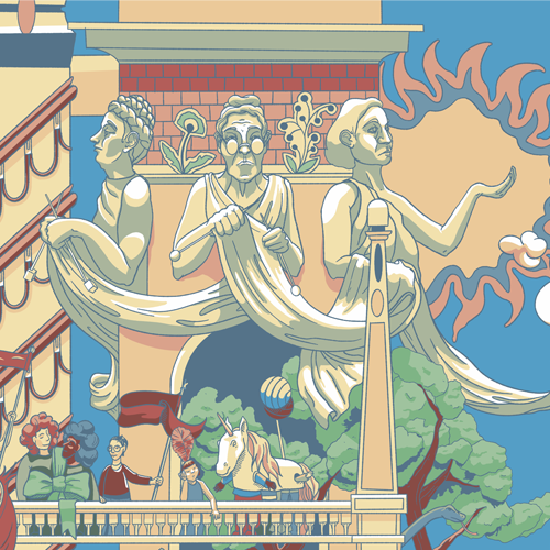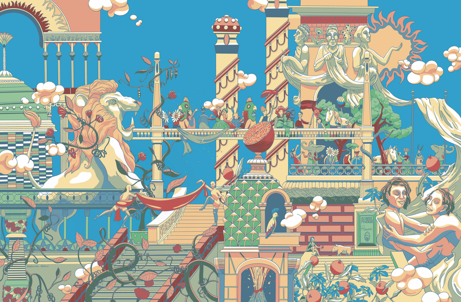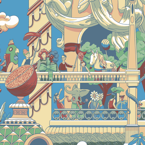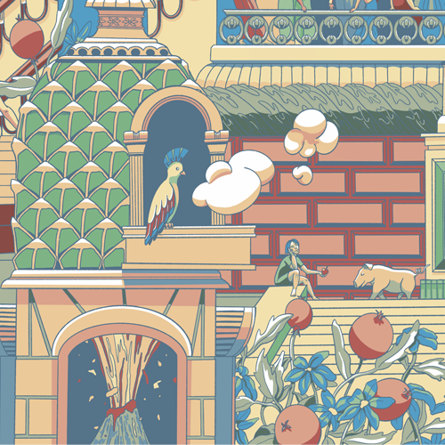 When delving into an illustration by Aleksandra Miletic, you never know when you'll emerge. Luxuriance, abundance, profusion! Aleksandra's surreal universe is an incredibly rich visual and narrative experience. Comprising dreamlike landscapes, ornamental architectures, chimeric characters, her work is an invitation to rediscover the imagination of our childhood souls, where every detail comes to life before our eyes, and each glance unveils a new story. Its emotional and creative impact never fails to deeply touch us.