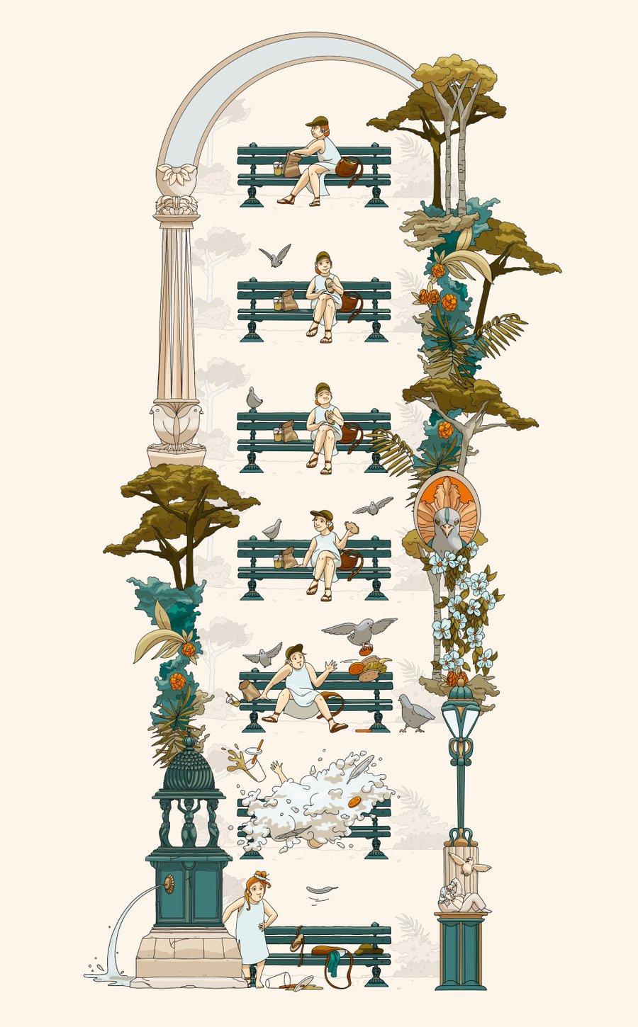 When delving into an illustration by Aleksandra Miletic, you never know when you'll emerge. Luxuriance, abundance, profusion! Aleksandra's surreal universe is an incredibly rich visual and narrative experience. Comprising dreamlike landscapes, ornamental architectures, chimeric characters, her work is an invitation to rediscover the imagination of our childhood souls, where every detail comes to life before our eyes, and each glance unveils a new story. Its emotional and creative impact never fails to deeply touch us.