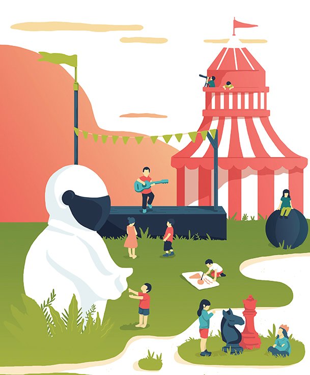 The combination of softness and vitality that characterizes the work of Angélique Agasse allows her to combine the authenticity of the situations she illustrates with the modernity of a graphic treatment made of solid colors, subtle textures and saturated colors. Angélique is also the second Indian of the eponymous duo from Nantes.