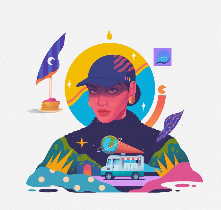 Woman cap ice cream truck
