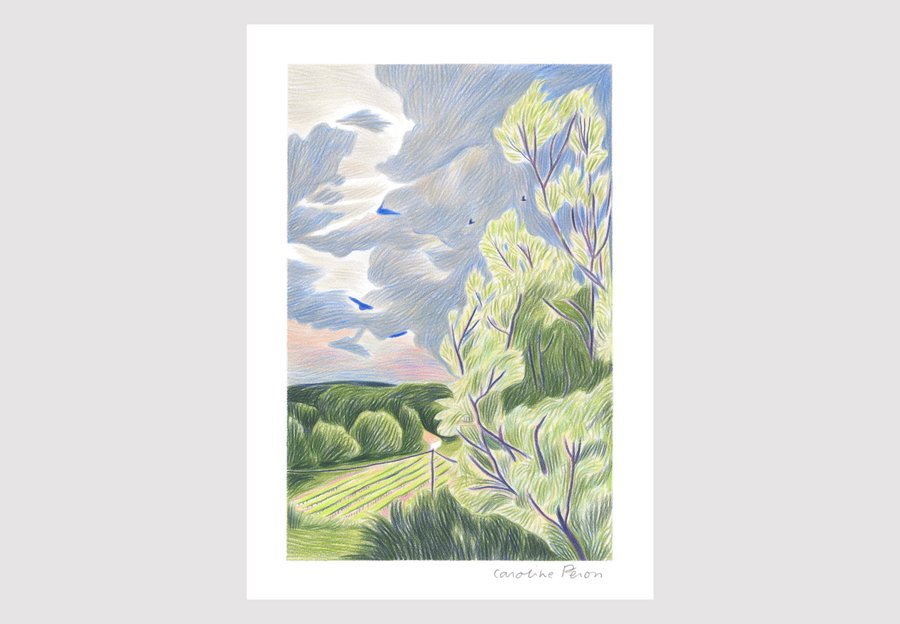 Caroline Péron is much more than an illustrator artist, she dances with color, shadow, and light. Her illustrations immerse us in realms where sun, nature, and bodies converge beneath the perpetual movement of her pencil stroke.