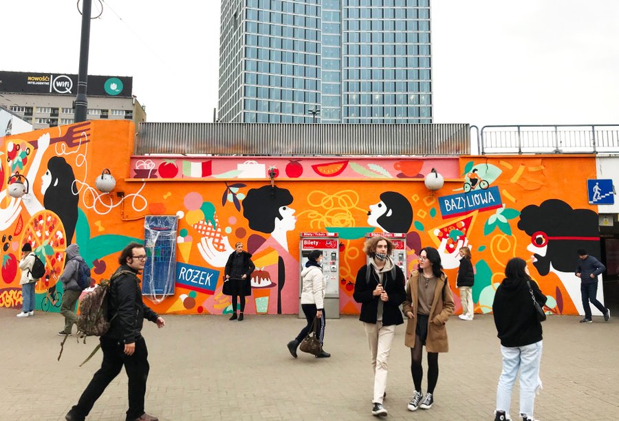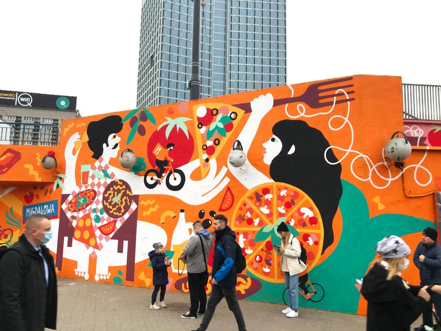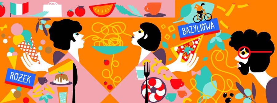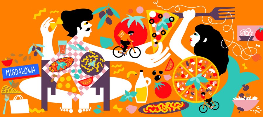 Illustration murale sur le thème de la cuisine italienne pour Pyszne.pl (JUST EAT) - une plateforme de livraison de nourriture en ligne leader dans le monde.