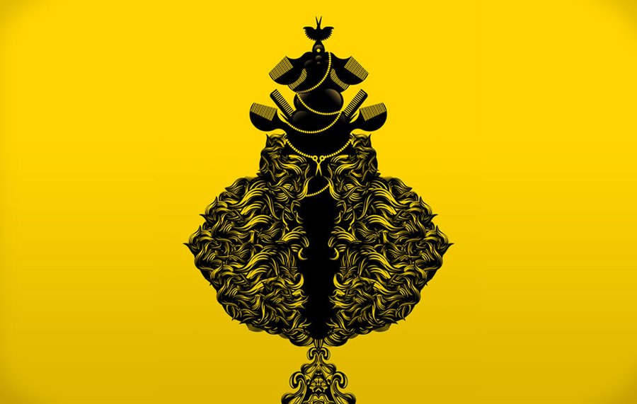 Experimental Two-color illustrations to recreate volumes from an inert element: hair.
