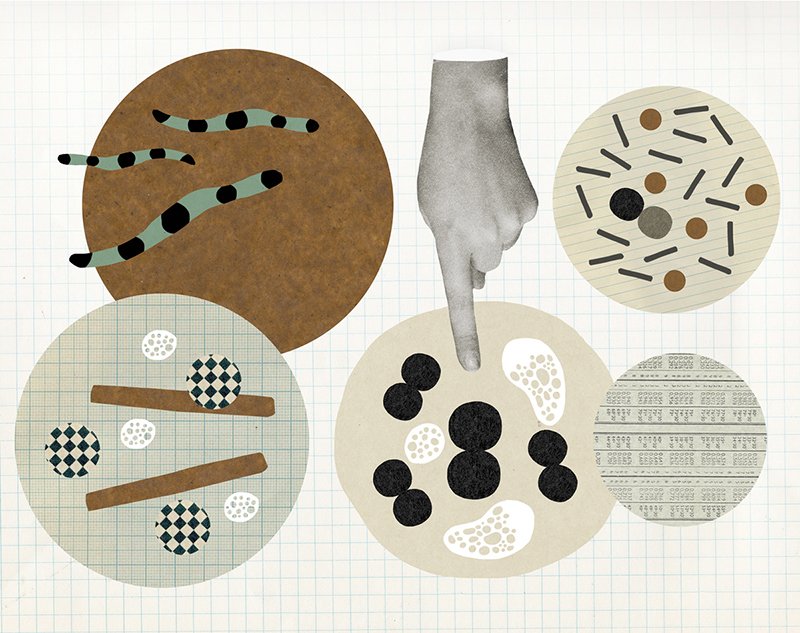 Couverture et illustrations d'un article sur la résistance aux antibiotiques.