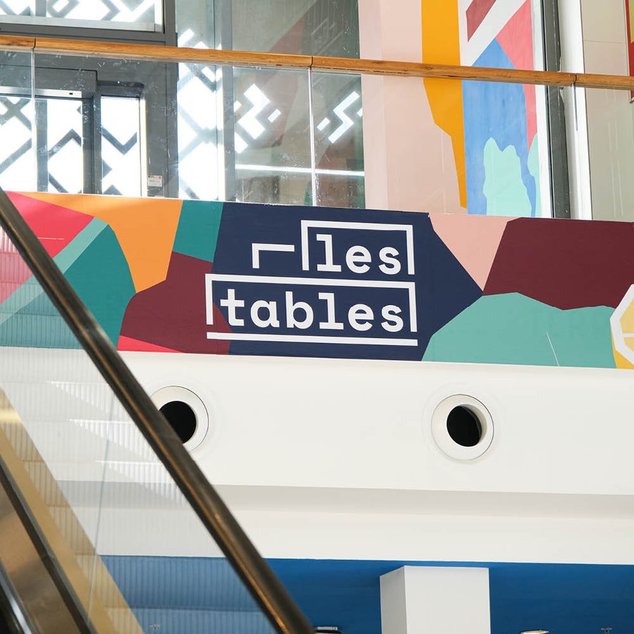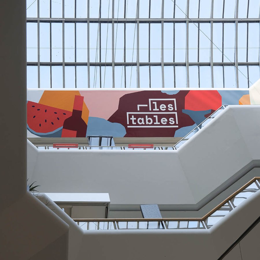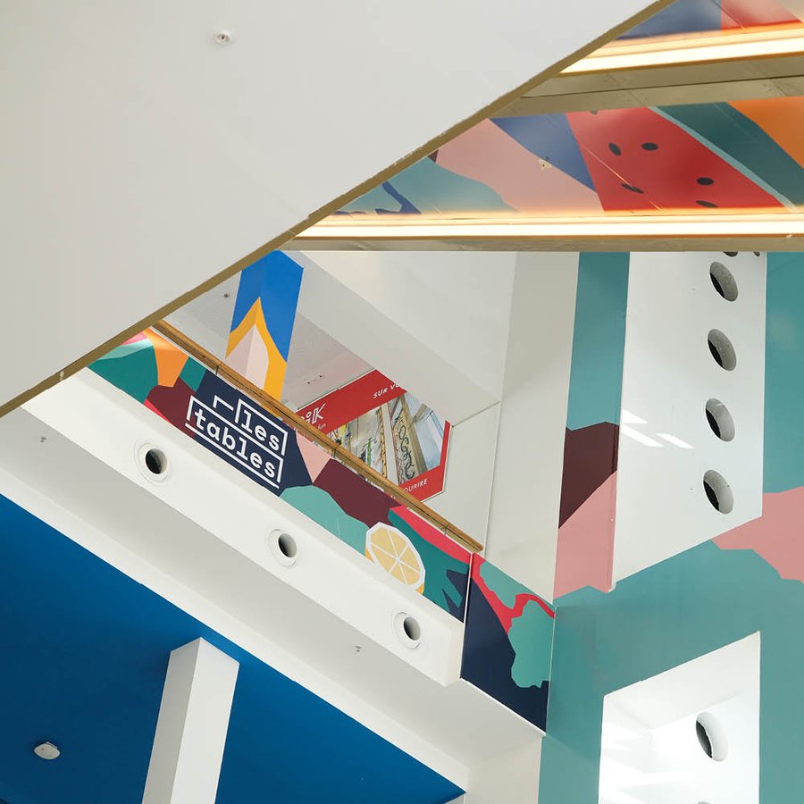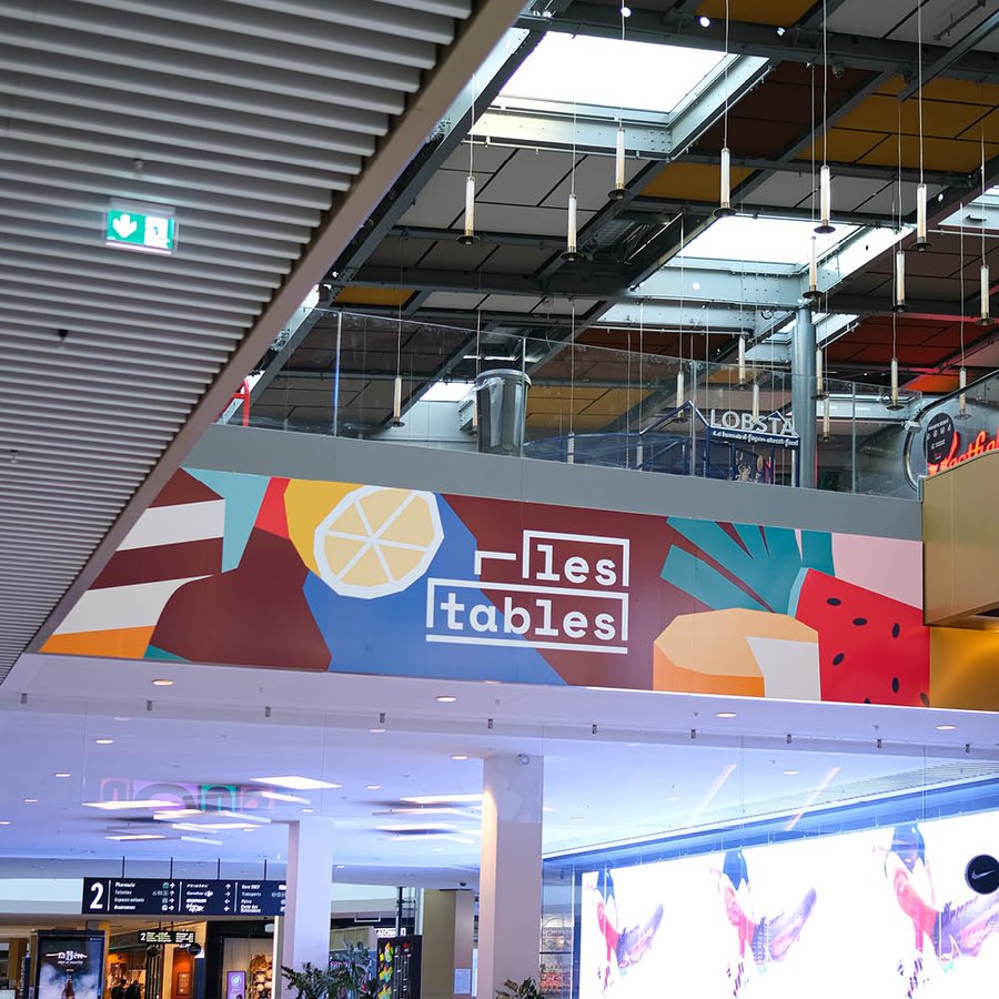 Pour leur espace restauration ouvert en 2021, le centre Westfield la Part-Dieu souhaitait créer une identité impactante et colorée, déclinée sous formes de fresques dans tout le centre commercial permettant de faire connaitre l'espace "les Tables".