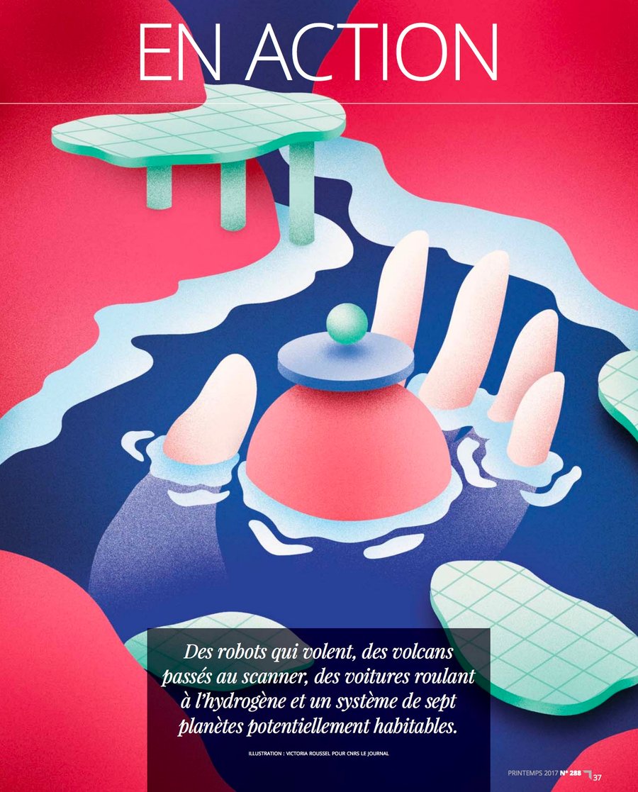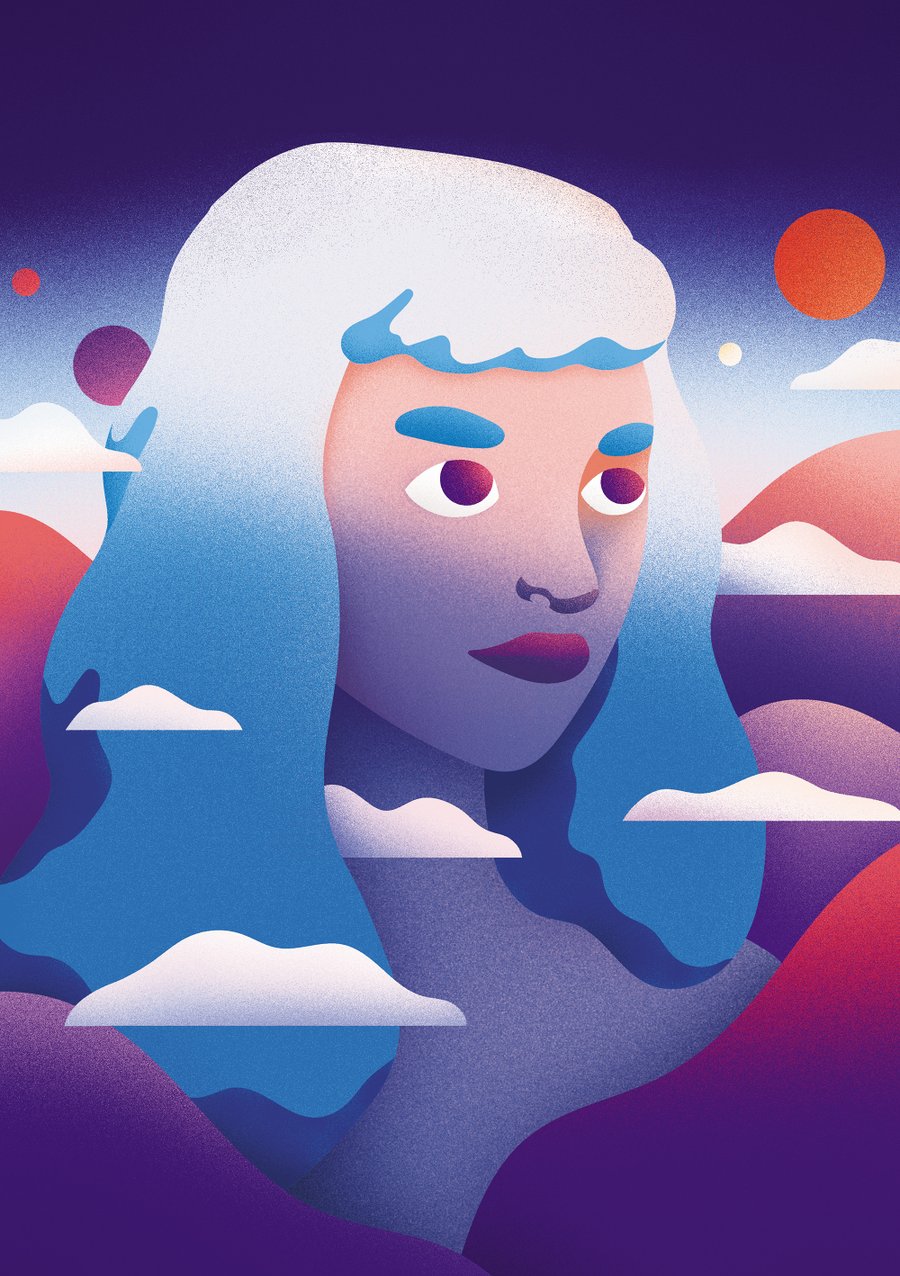 Fascinated by nature, mountain, exploration, hiking and climbing, Victoria carries with her a slight obsession for the cosmos and the mountainous reliefs. Her work displays her unconditional love for summits, bright sunset colours, enchanting natural landscapes, moonlight, and the vastness of starry skies. When this never-ending observation of nature combines to her always refining illustration skills, the result is often enchanted scenery, vivid scenery and dreamlike landscapes. This unique combination gave her the opportunity to apply her art on a vast array of media and to collaborate with agencies worldwide and clients from the like of Air France, La Maison du Chocolat, Le Musée des Confluences, Sidaction, AngelList and many more.