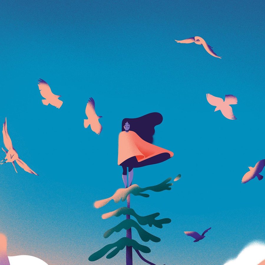 Fascinated by nature, mountain, exploration, hiking and climbing, Victoria carries with her a slight obsession for the cosmos and the mountainous reliefs. Her work displays her unconditional love for summits, bright sunset colours, enchanting natural landscapes, moonlight, and the vastness of starry skies. When this never-ending observation of nature combines to her always refining illustration skills, the result is often enchanted scenery, vivid scenery and dreamlike landscapes. This unique combination gave her the opportunity to apply her art on a vast array of media and to collaborate with agencies worldwide and clients from the like of Air France, La Maison du Chocolat, Le Musée des Confluences, Sidaction, AngelList and many more.