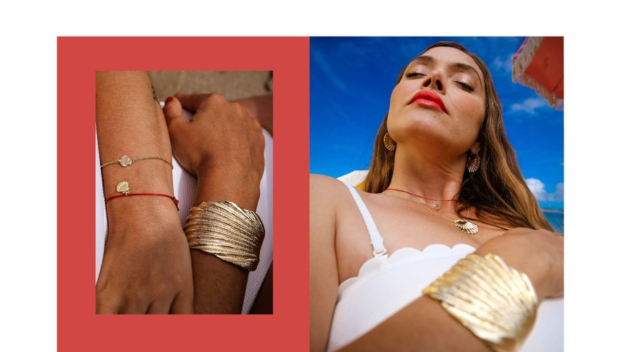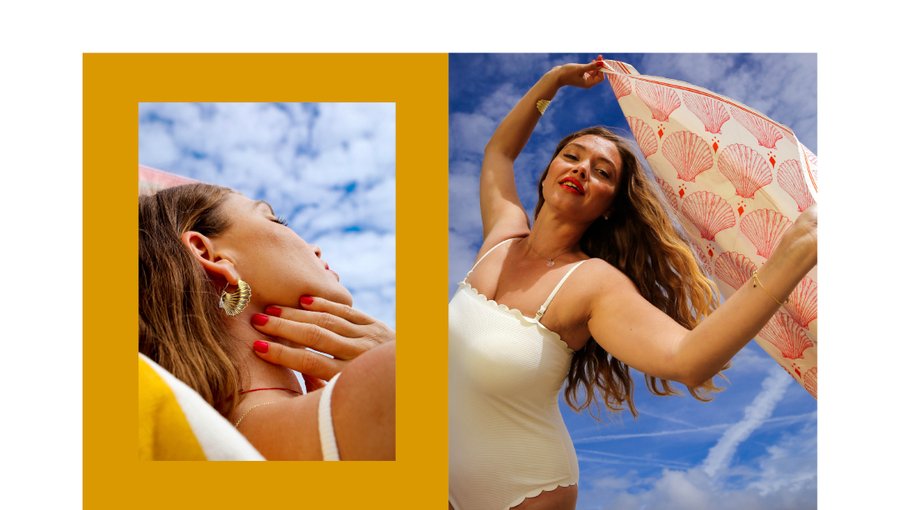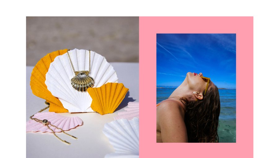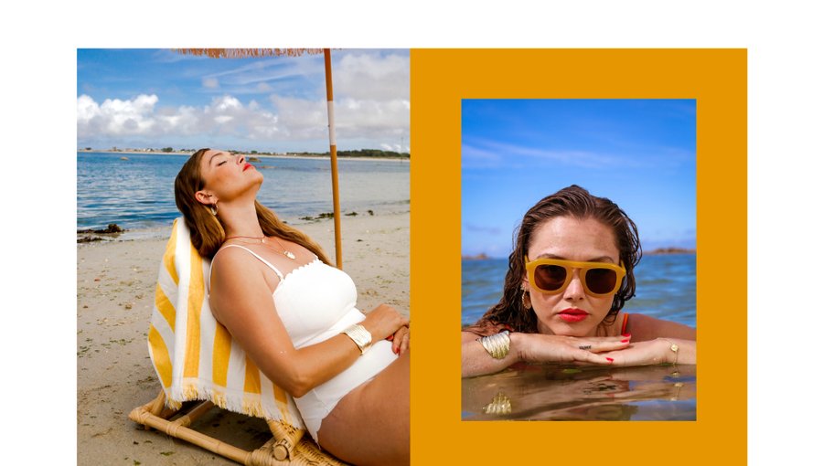 Armeria est une marque bretonne fière de sa culture et de ses valeurs. Inspirée par la Coquille Saint Jacques emblématique de Bretagne, sa nouvelle collection incarne la Venus Bretonne. Le set design doré et ensoleillé de ce shooting est fabriqué manuellement.