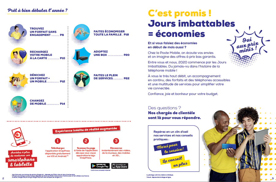 Rédaction des guides et refonte du programme relationnel de La Poste Mobile : catalogue, gondoles, emailings et mailings.