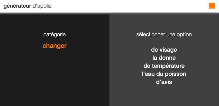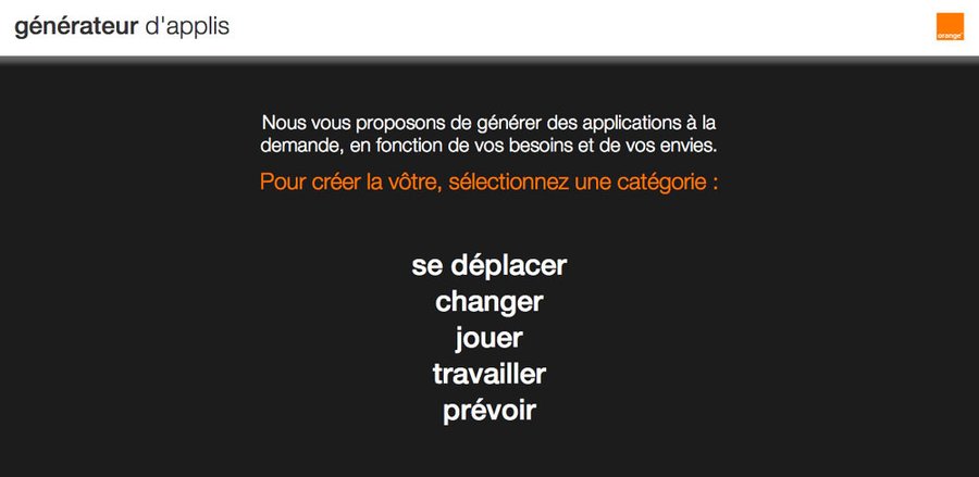 >>> ACTIVATION WEBDéclinaison des films TV.L'IDEECréation d'un site web permettant de promouvoir l'offre d'applis mobiles "utiles" d'Orange à travers un générateur d'applis inutiles.