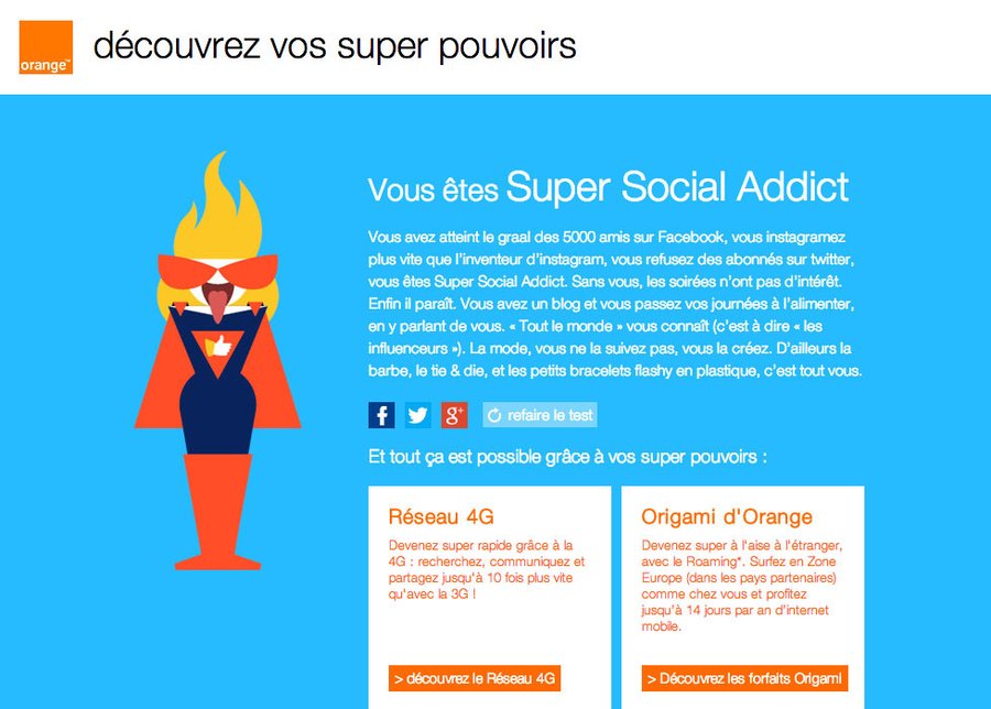 >>> ACTIVATION WEBDéclinaison du film TV.L'IDEECréation d'un site web permettant de définir quel super héros 4G vous êtes via un test de personnalité.