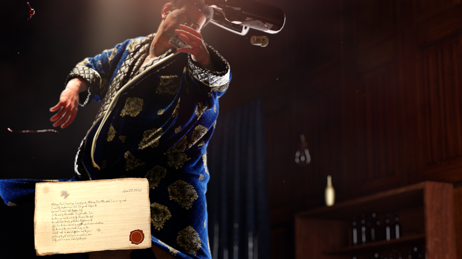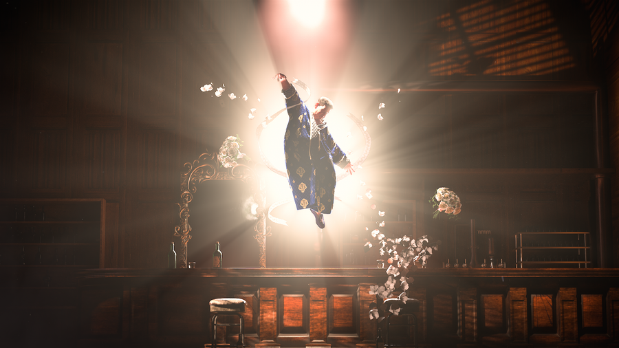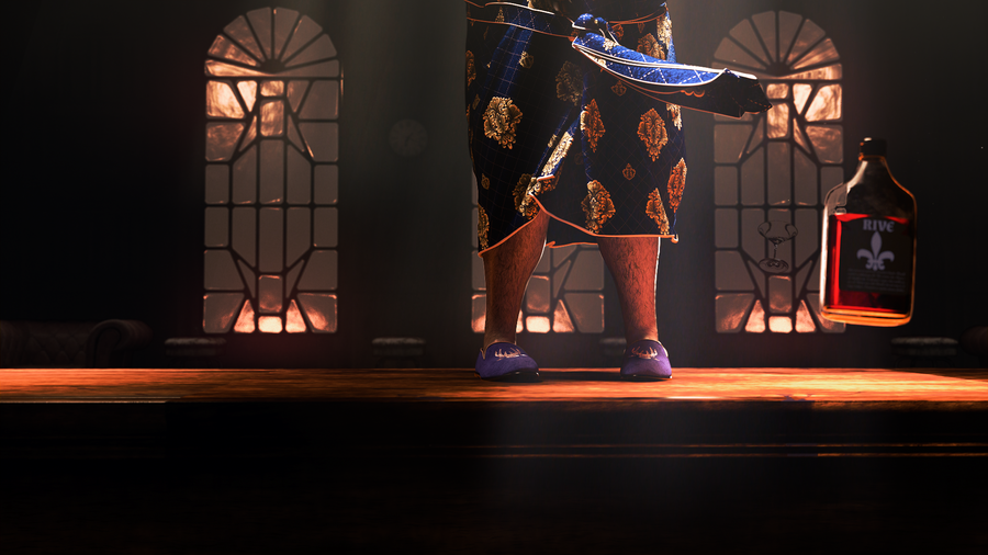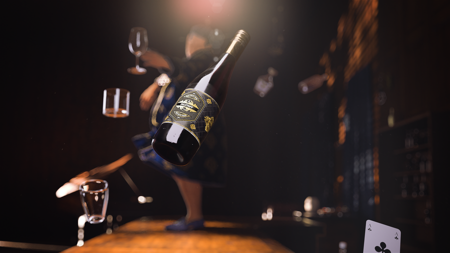 The character is described as a creator of chaos, paunchy and full of flaws. So the idea in this movie was to introduce the chaos through a ballet of bottles that spin and twirl around him, through a multitude of elements that frantically adapt to his dance steps. We tried to build a certain form of aesthetics in this emotional and material disorder. Because even if this man has nothing attractive at first sight, he always ends up enchanting the public. Falstaff dances on the bar because he is drunk, he is a bon vivant, he laughs and leads us in spite of ourselves into the light, symbol of a successful quest.