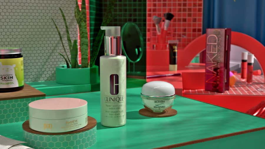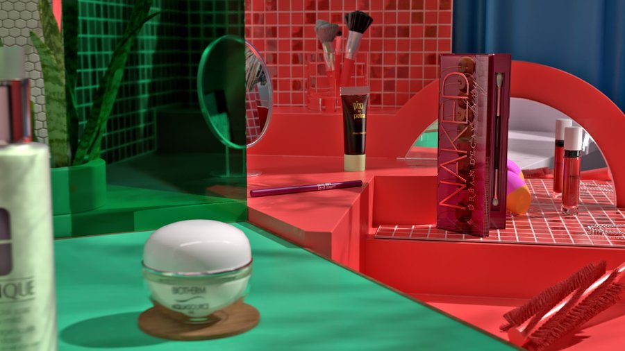 Flaconi approached us to create an unique TV-commercial for them. They had the idea to showcase their product line in an aesthetic one shot video. We knew right away that the only way to achieve this would be by 3D scanning each individual product and than placing them into a 3D studio setting.