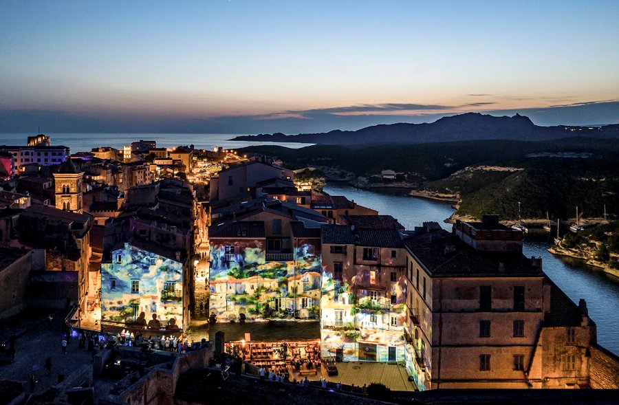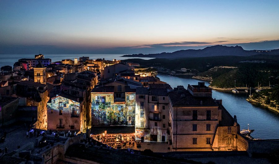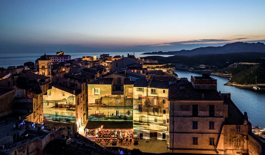Création d'un vidéo-mapping architectural pour le festival FestiLumi 2023 à Bonifacio, réalisé avec Nature Graphique.