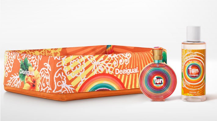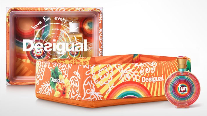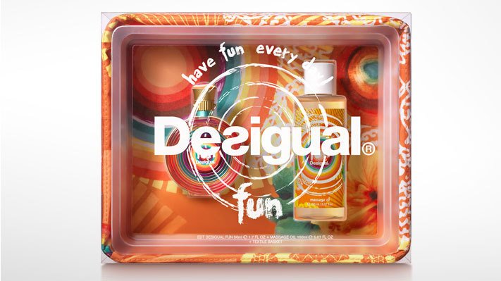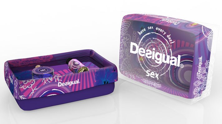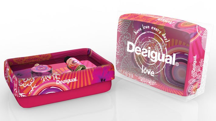Coffrets textiles pour la collection de parfum Love, Sex and Fun de Desigual.
